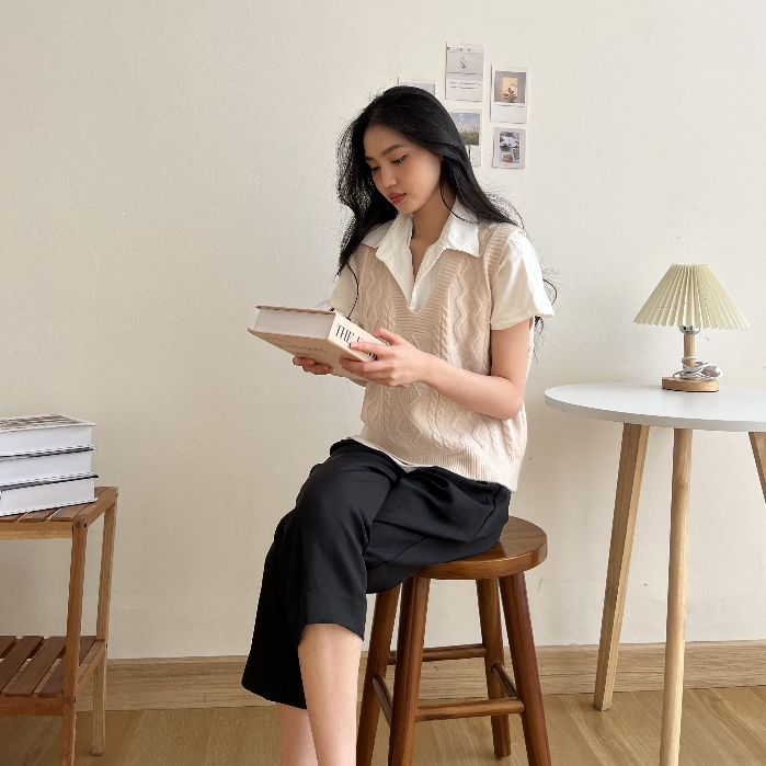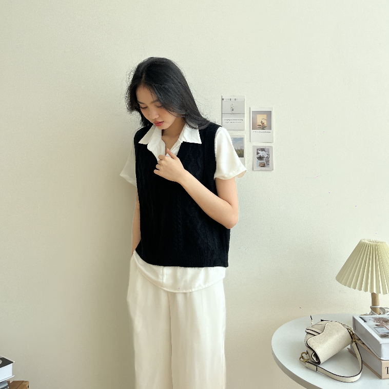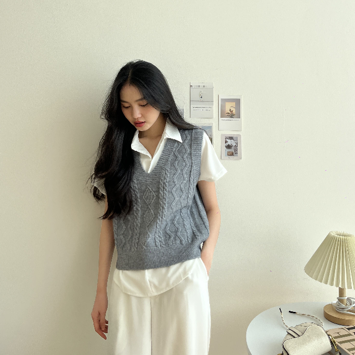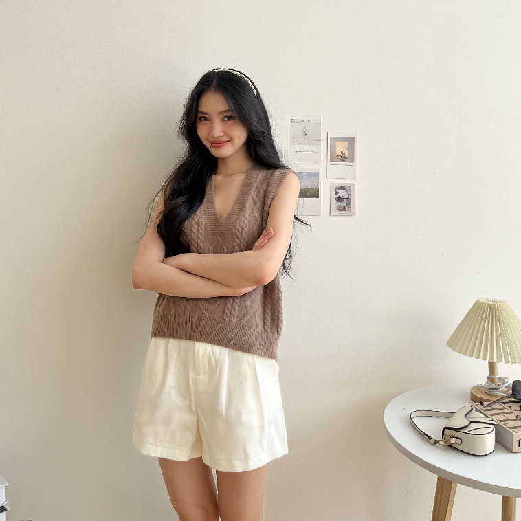 KAORITHELABEL | CABLE KNIT VEST | ROMPI RAJUT PREMIUM - ATASAN KNIT - BLOUSE WANITA - OUTER KERAH V-NECK - KOREAN STYLE