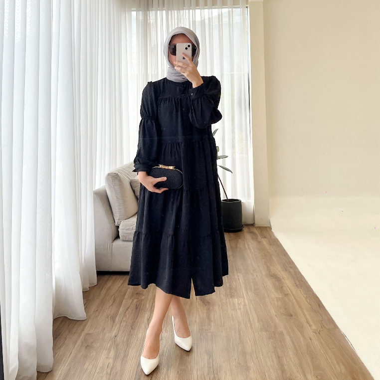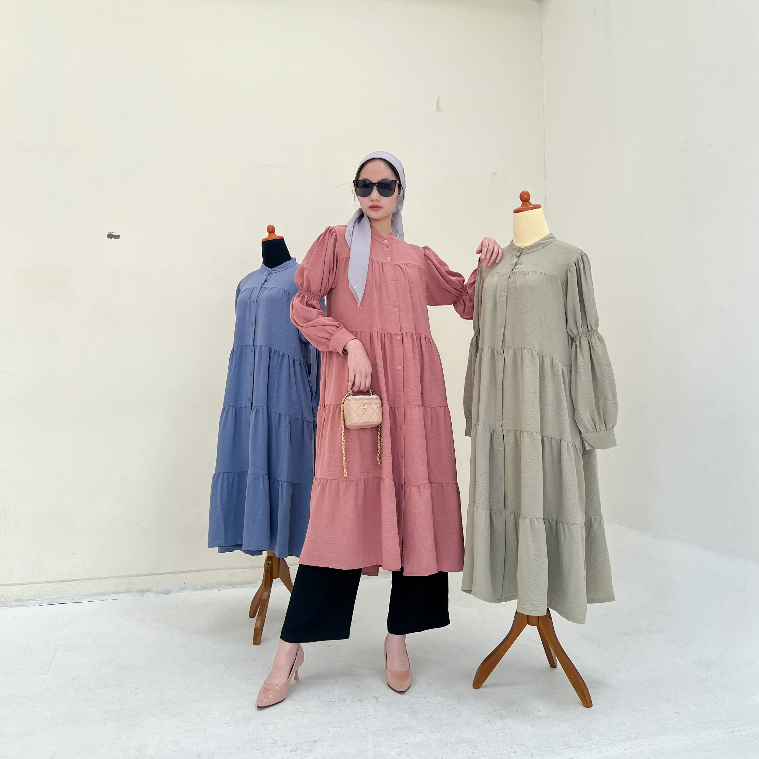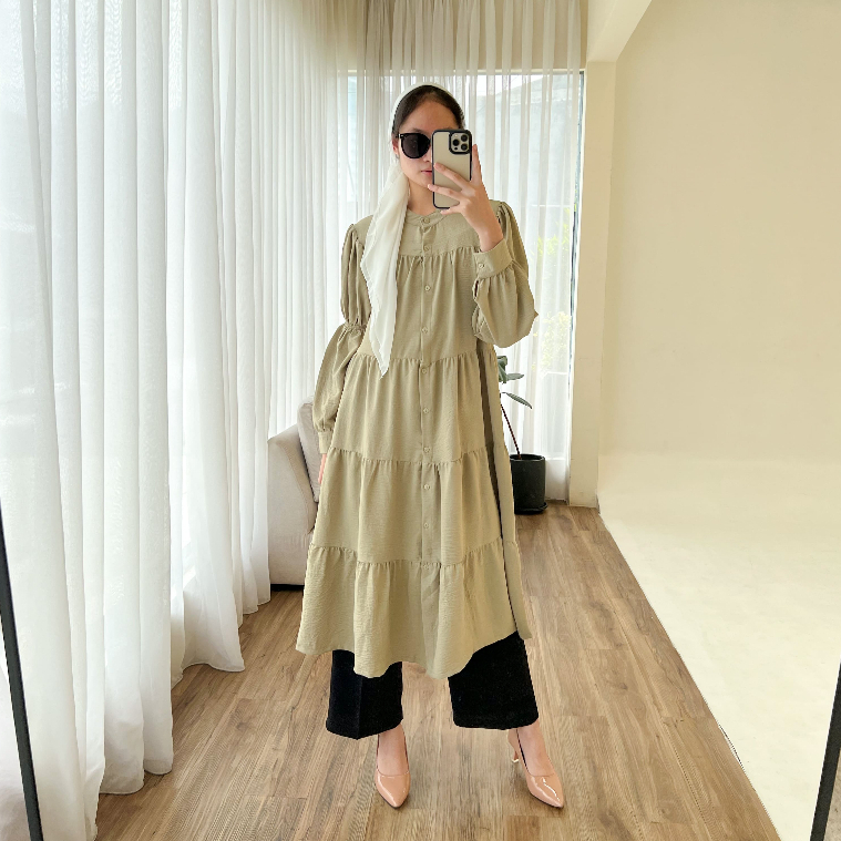 KAORITHELABEL | ZAHRA CRINKLE DRESS | FASHION MUSLIM - RAMADHAN COLLECTION - DRESS MIDI - TUNIK LEBARAN - TUNIC WANITA