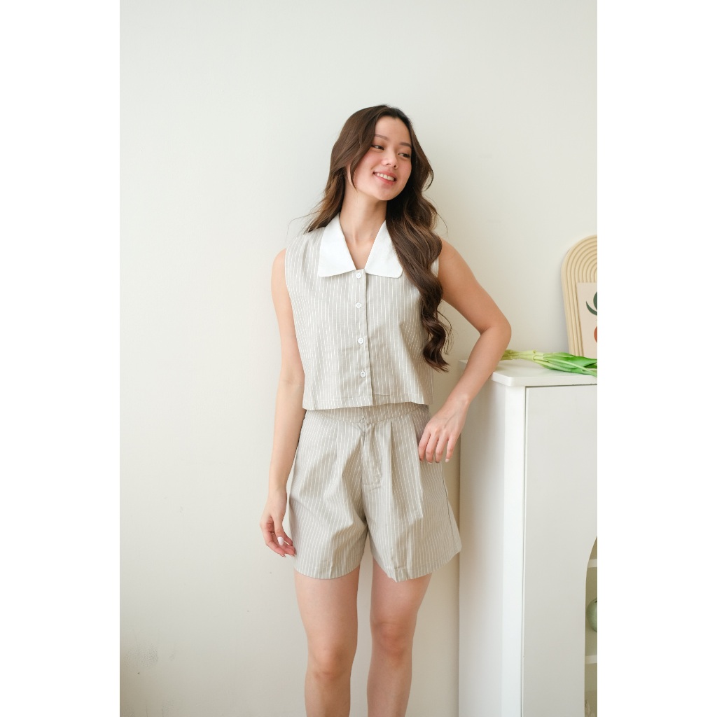 KAORITHELABEL | MASEY COLLAR STRIPES SET | SETELAN WANITA TERBARU - CASUAL SET - 1 GET 2 - ATASAN WANITA KEKINIAN
