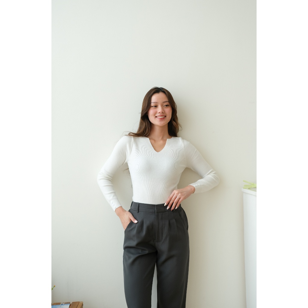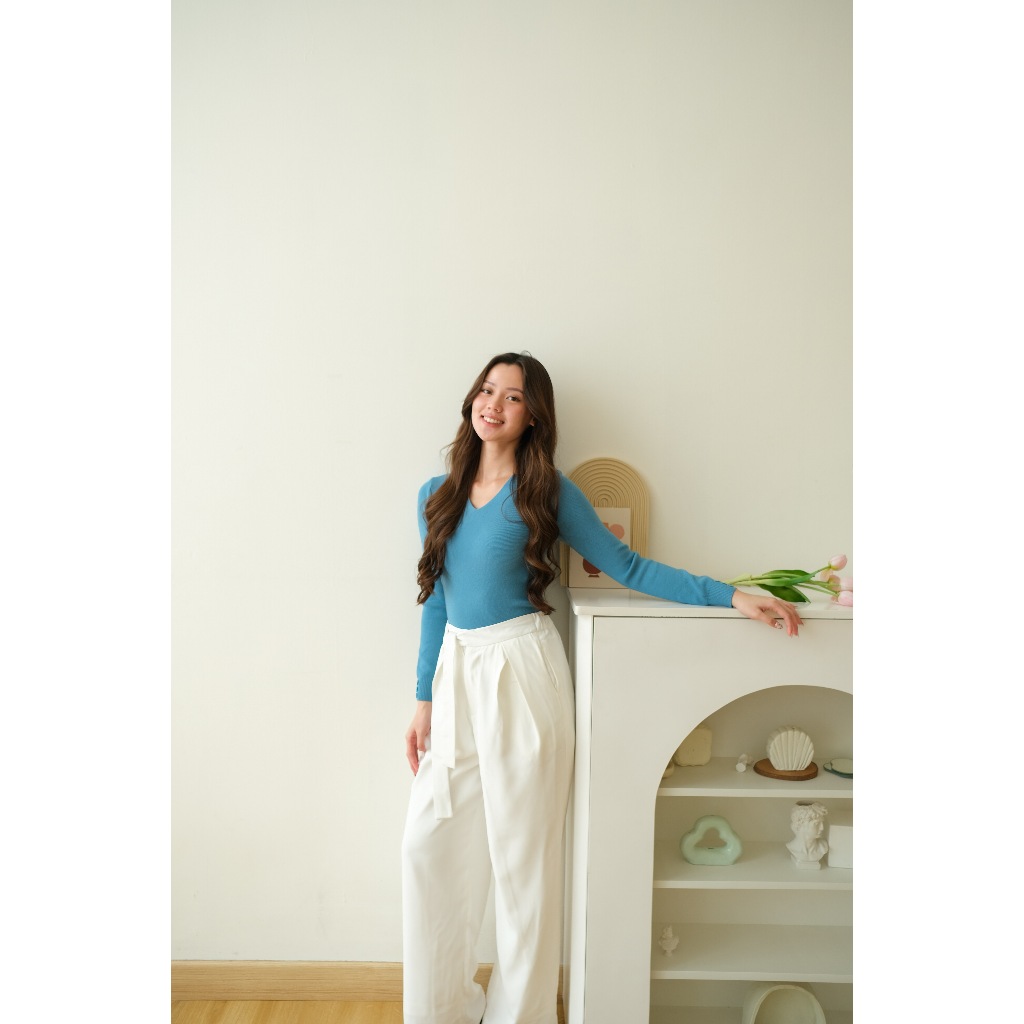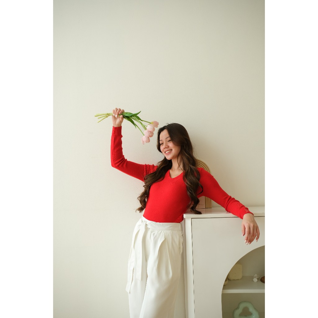 KAORITHELABEL | CIARA KNIT V NECK T0P | BLOUSE LONG SLEEVE - ATASAN RAJUT WANITA - CASUAL T0P - KOREAN STYLE