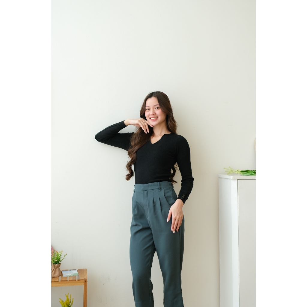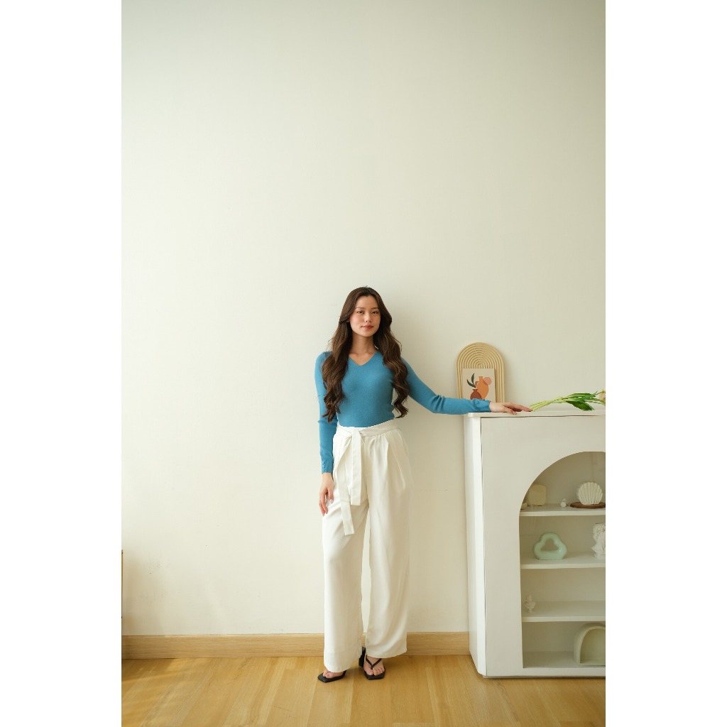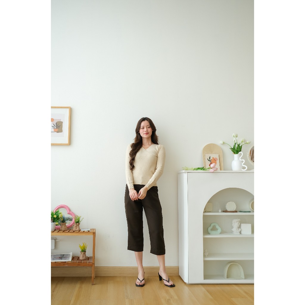 KAORITHELABEL | CIARA KNIT V NECK T0P | BLOUSE LONG SLEEVE - ATASAN RAJUT WANITA - CASUAL T0P - KOREAN STYLE