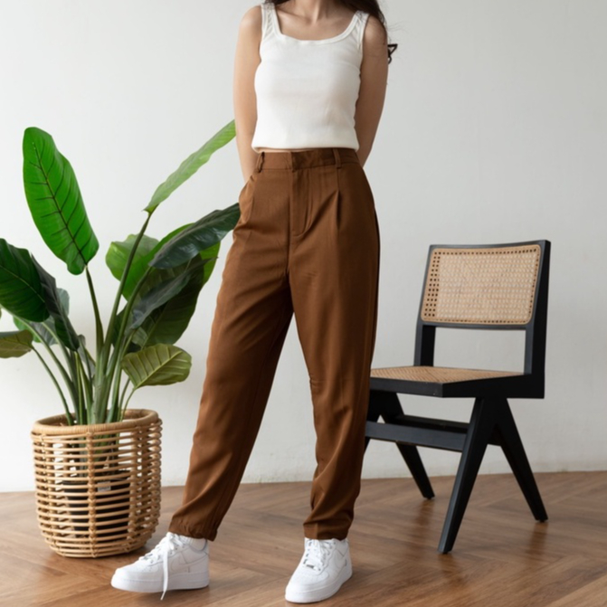 KAORITHELABEL | BUSAN SEMI JOGGER PANTS | CELANA JOGGER WANITA - CELANA HIGH WAIST - CELANA KANTOR PANJANG