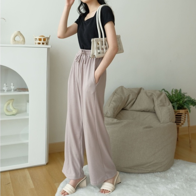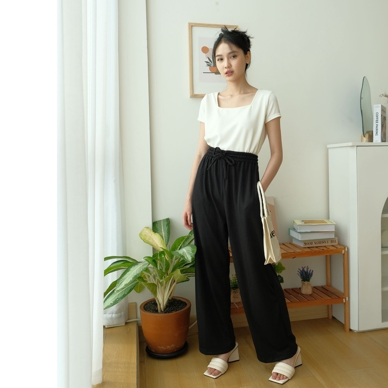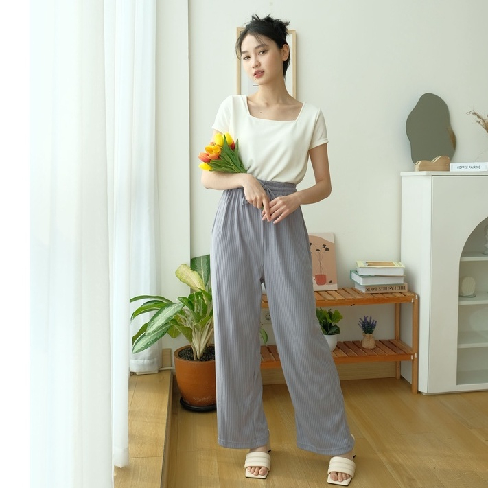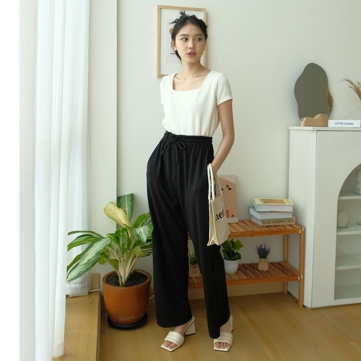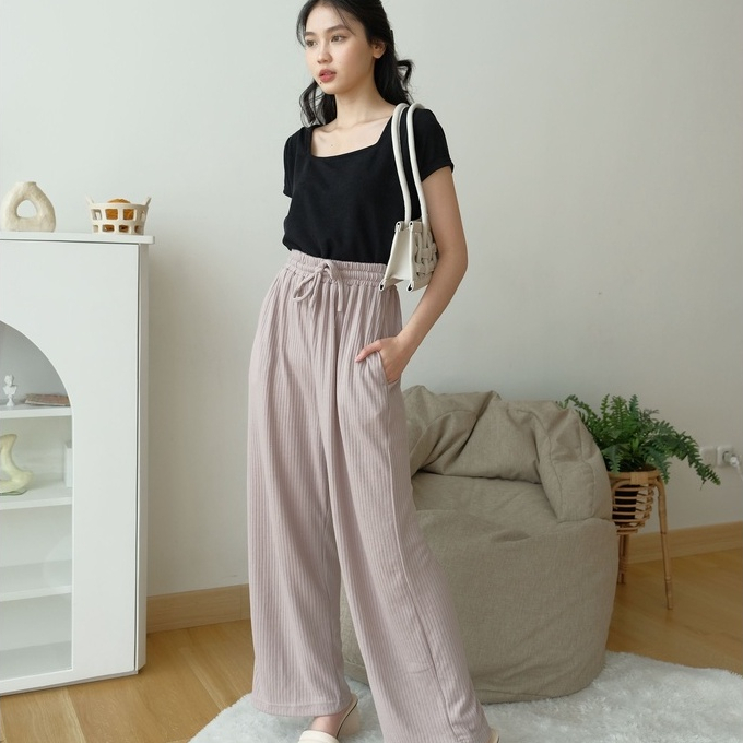 KAORITHELABEL | HYORI KNIT PANTS | RIB PANTS - CELANA PANJANG RAJUT WANITA - CELANA ANTI KUSUT - CELANA KOREA WANITA