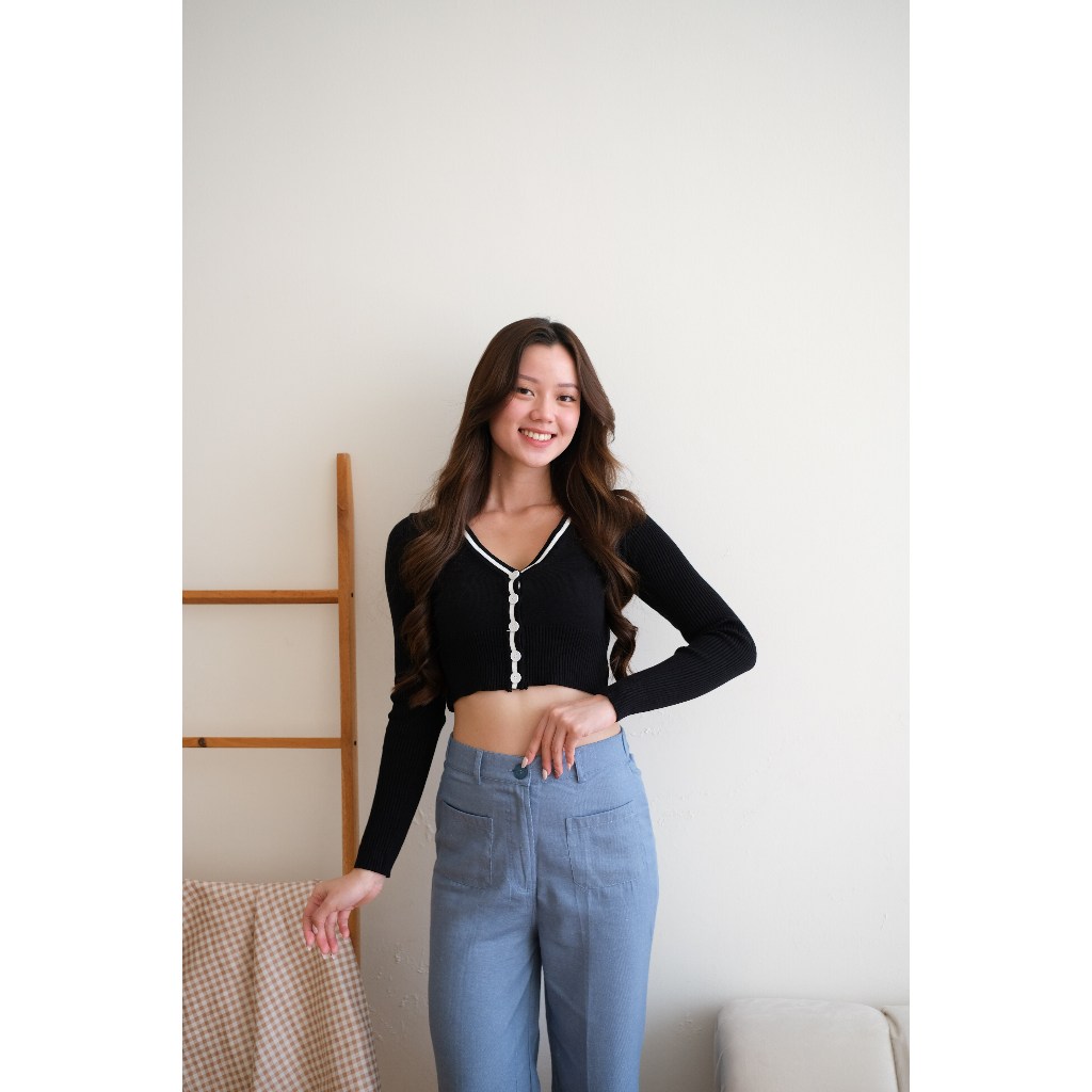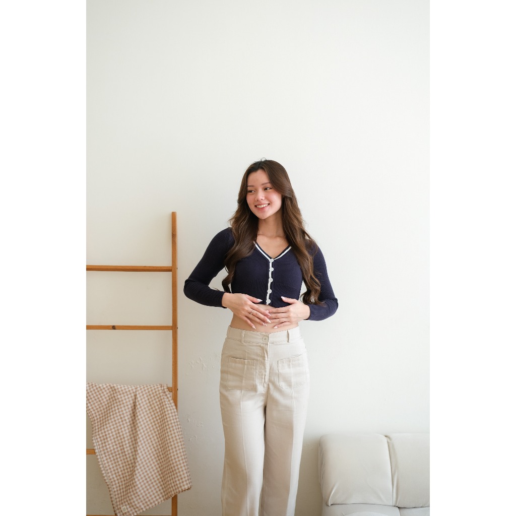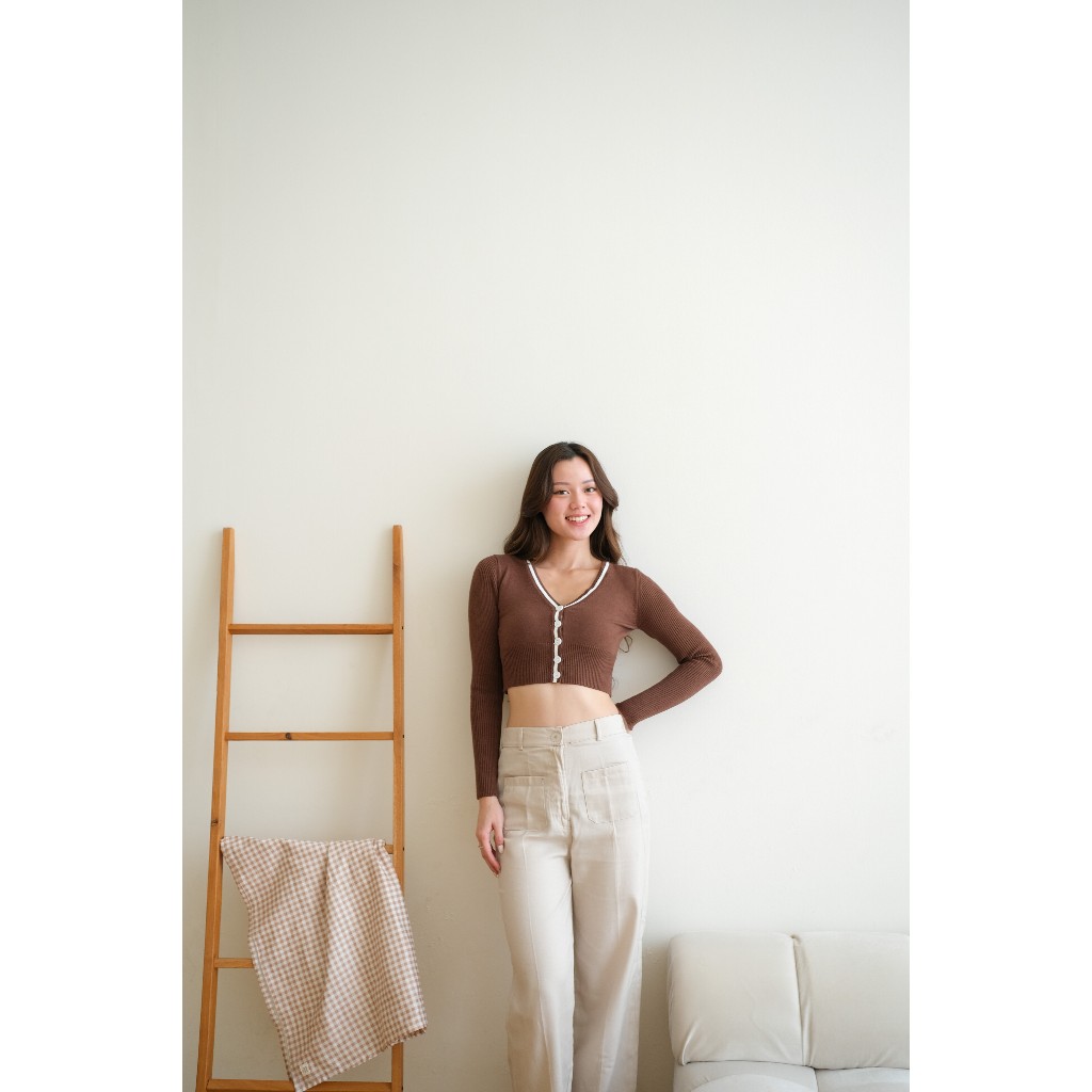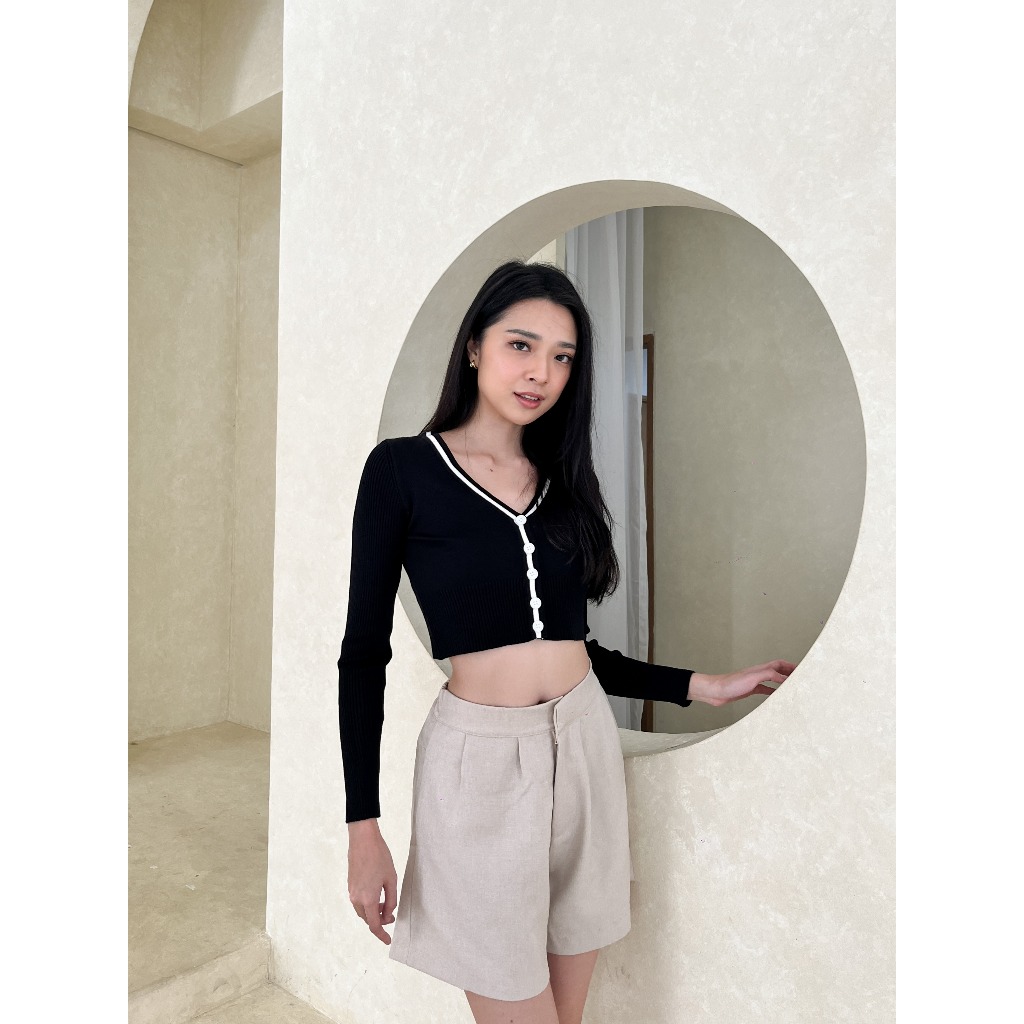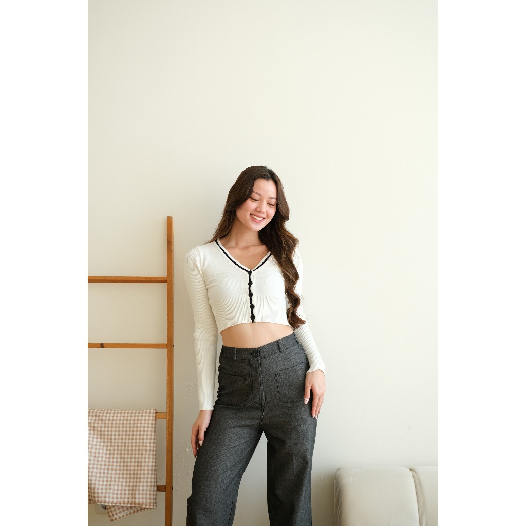 KAORITHELABEL | GEYA CARDIGAN CROP | CASUAL CROP T0P - ATASAN RAJUT WANITA - BLOUSE LENGAN PANJANG - KOREAN STYLE