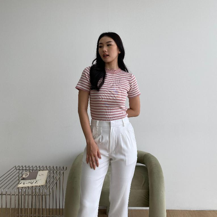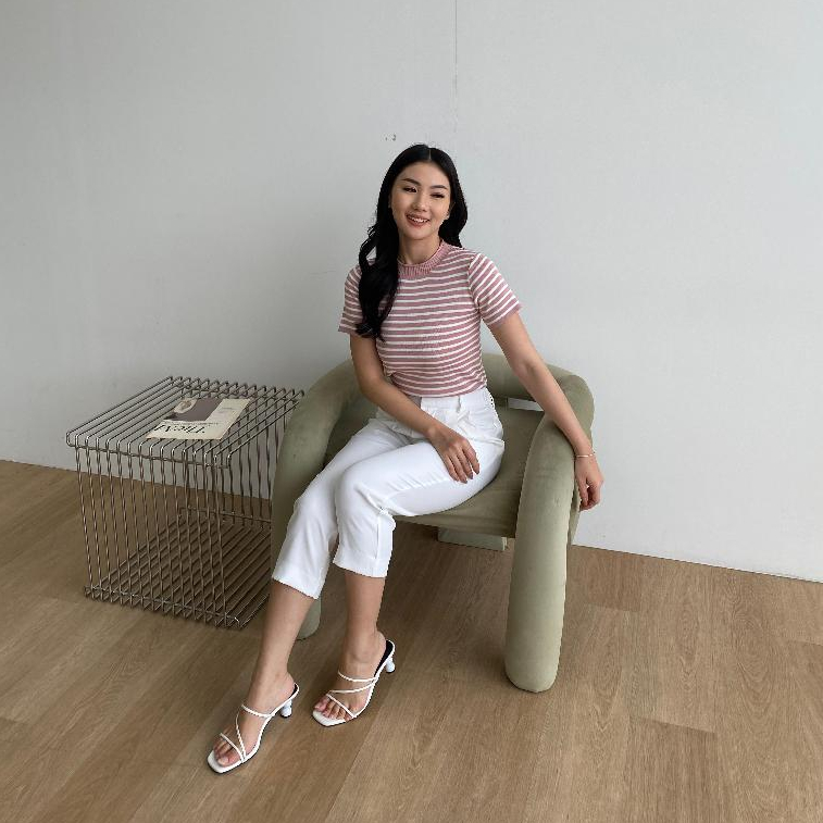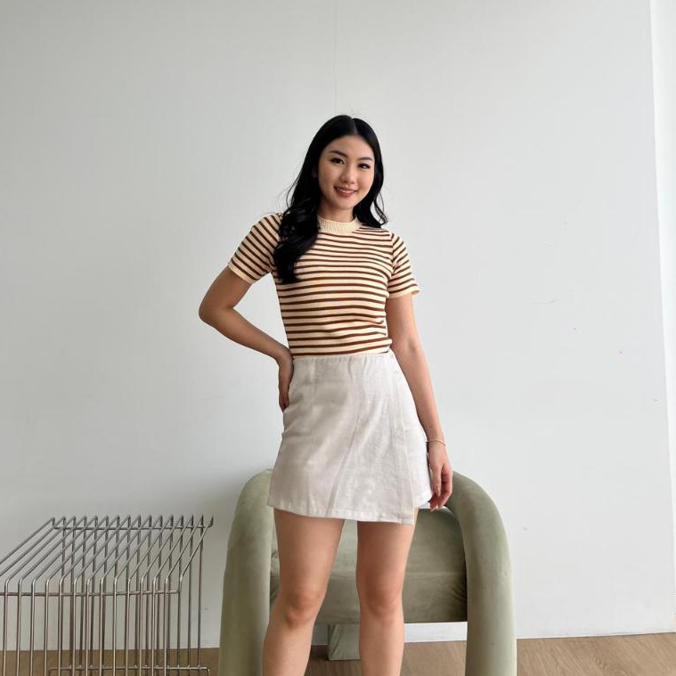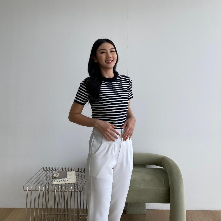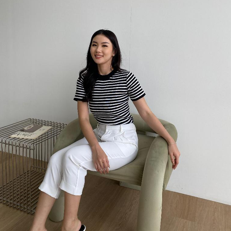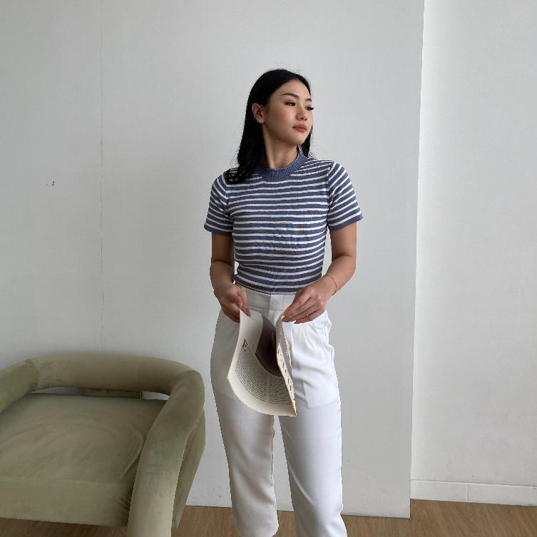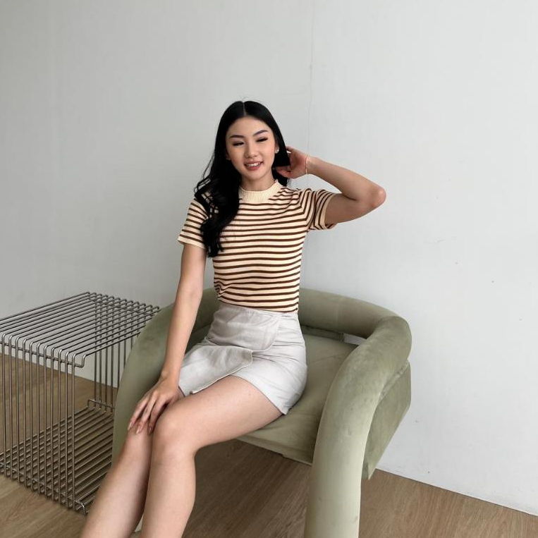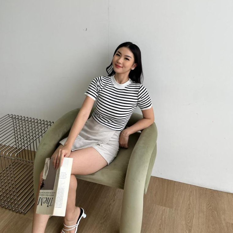 KAORITHELABEL | YULA KNIT STRIPES T0P | ATASAN RAJUT WANITA - BLOUSE SALUR SHORT SLEEVE - KOREAN CASUAL LOOK