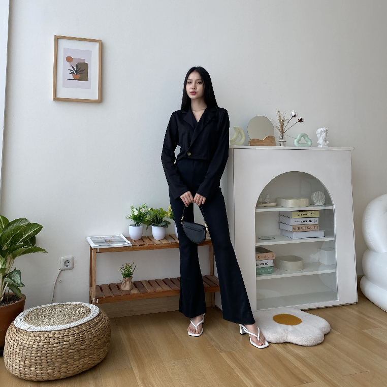 KAORITHELABEL | JEANNA ATASAN CROP BLAZER DAN CELANA CUTBRAY | OFFICE STYLE - T0P DAN BAWAHAN KOREAN STYLE