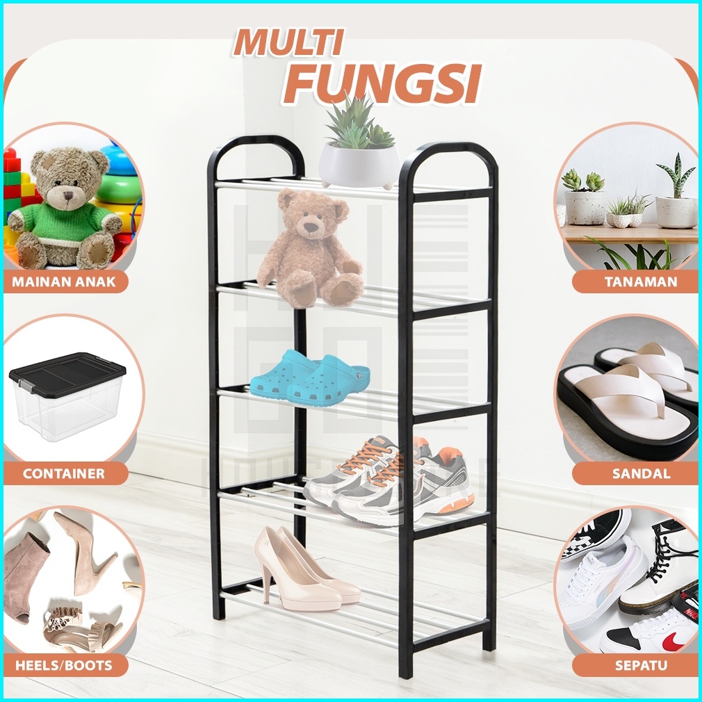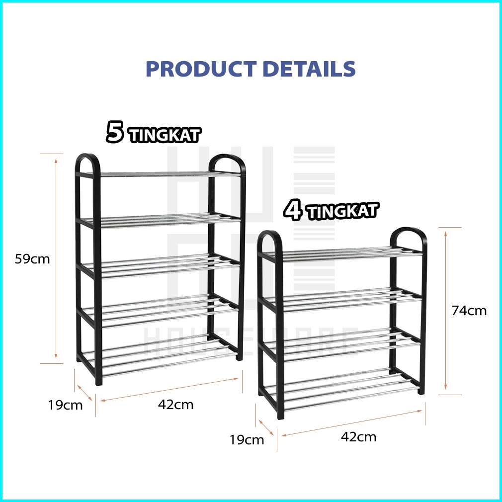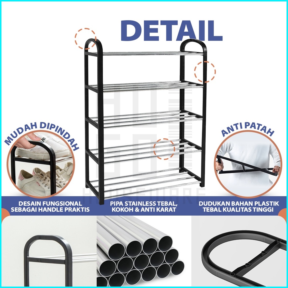 Hugo Rak Sepatu 4 Dan 5 Susun Portable Serbaguna Stainless Steel Tempat Sepatu Sandal Premium
