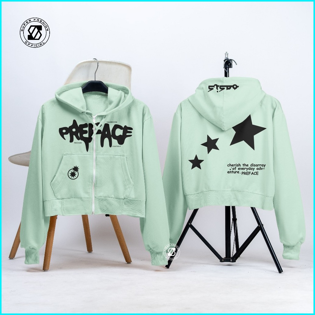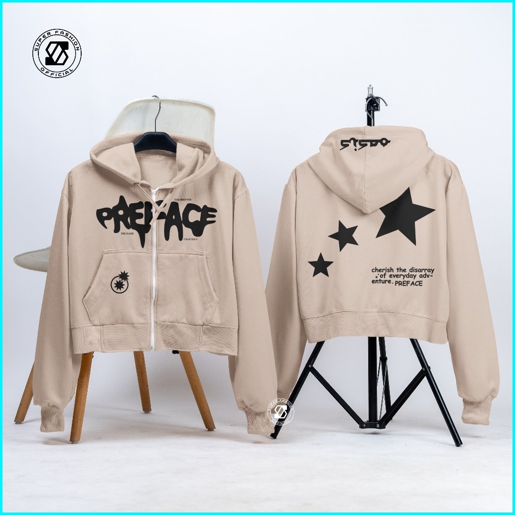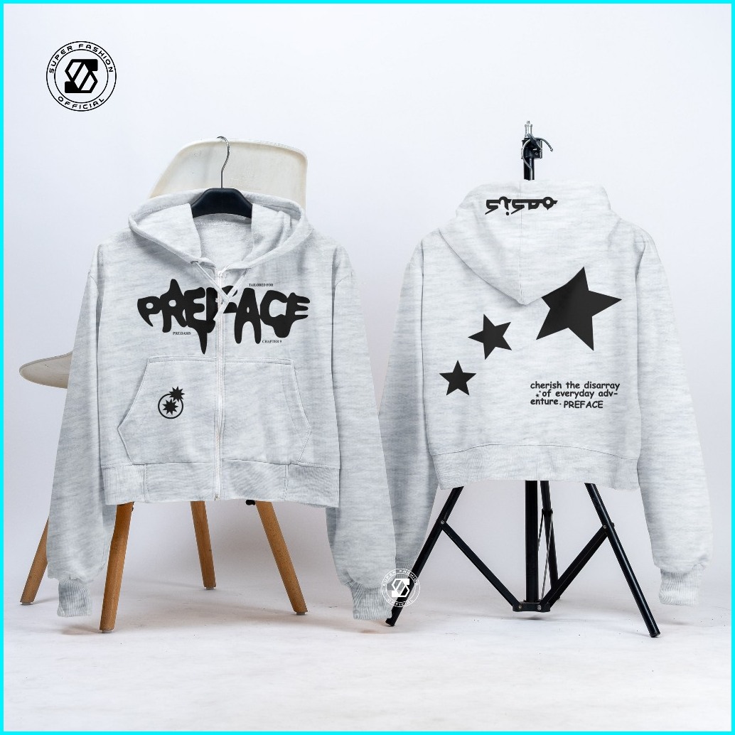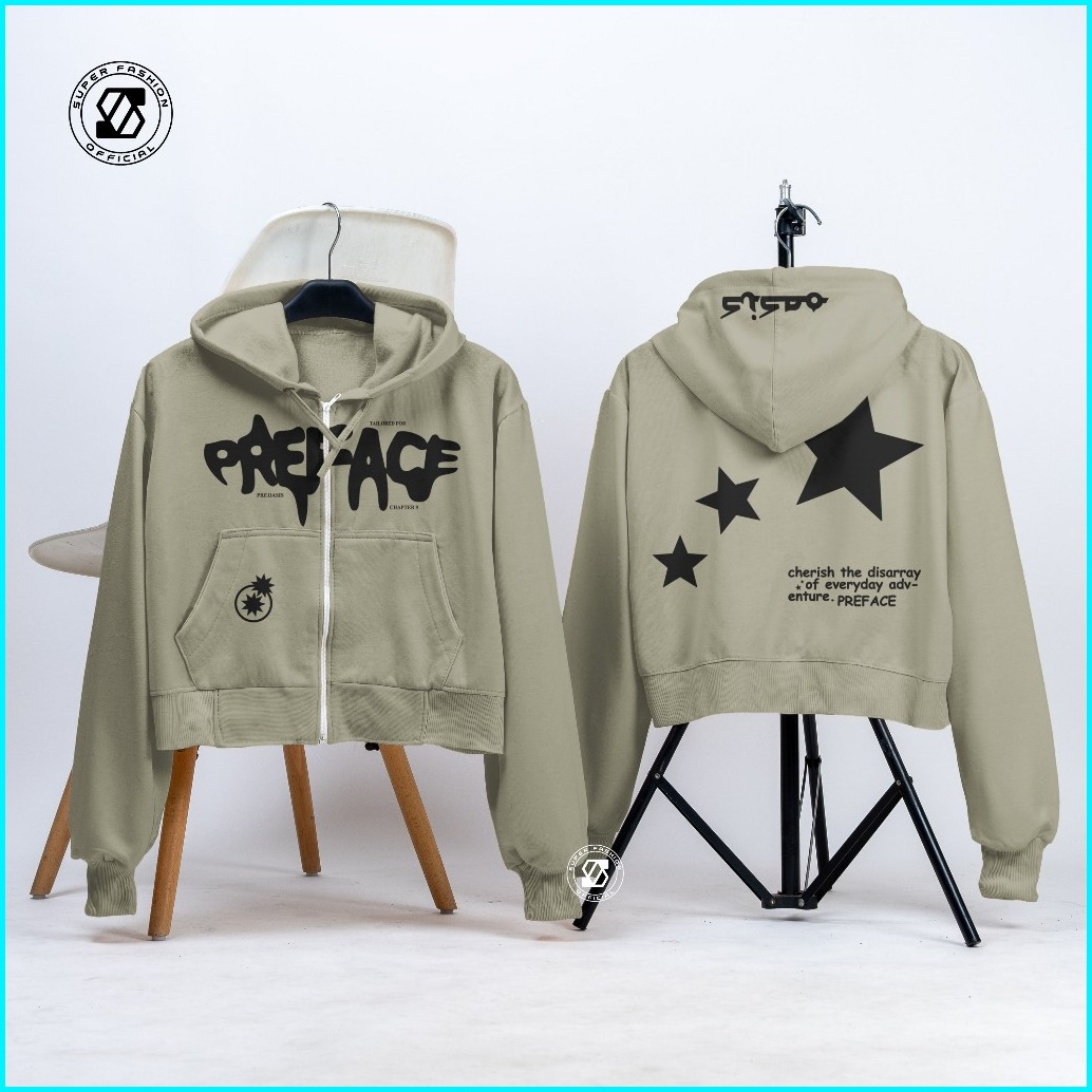 Ss - Hoodie Crop Wanita Preface Star Of Everyday Zipper Streetwear Style Anak Remaja Dewasa Kekinian