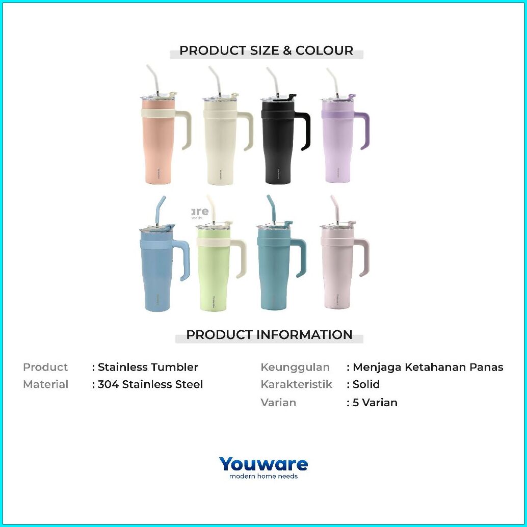 Youware - Noire Botol Minum Tumbler Stainless Steel 1200ml Tahan Panas Dingin