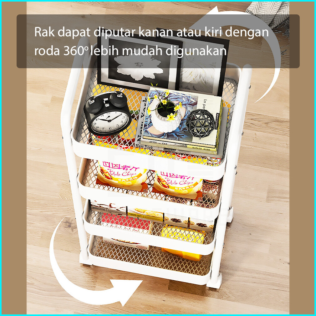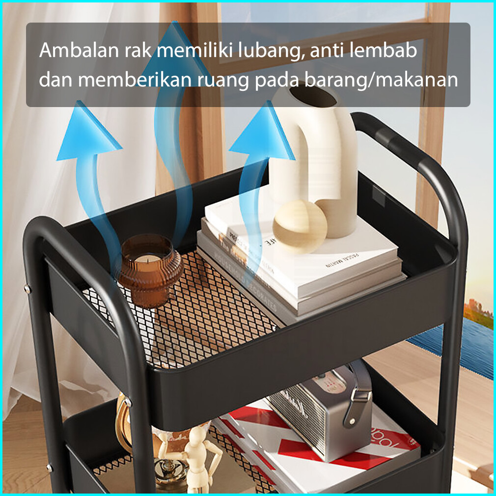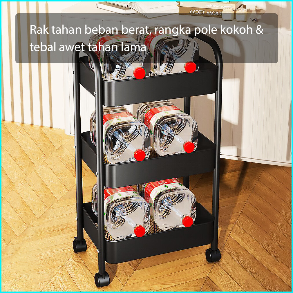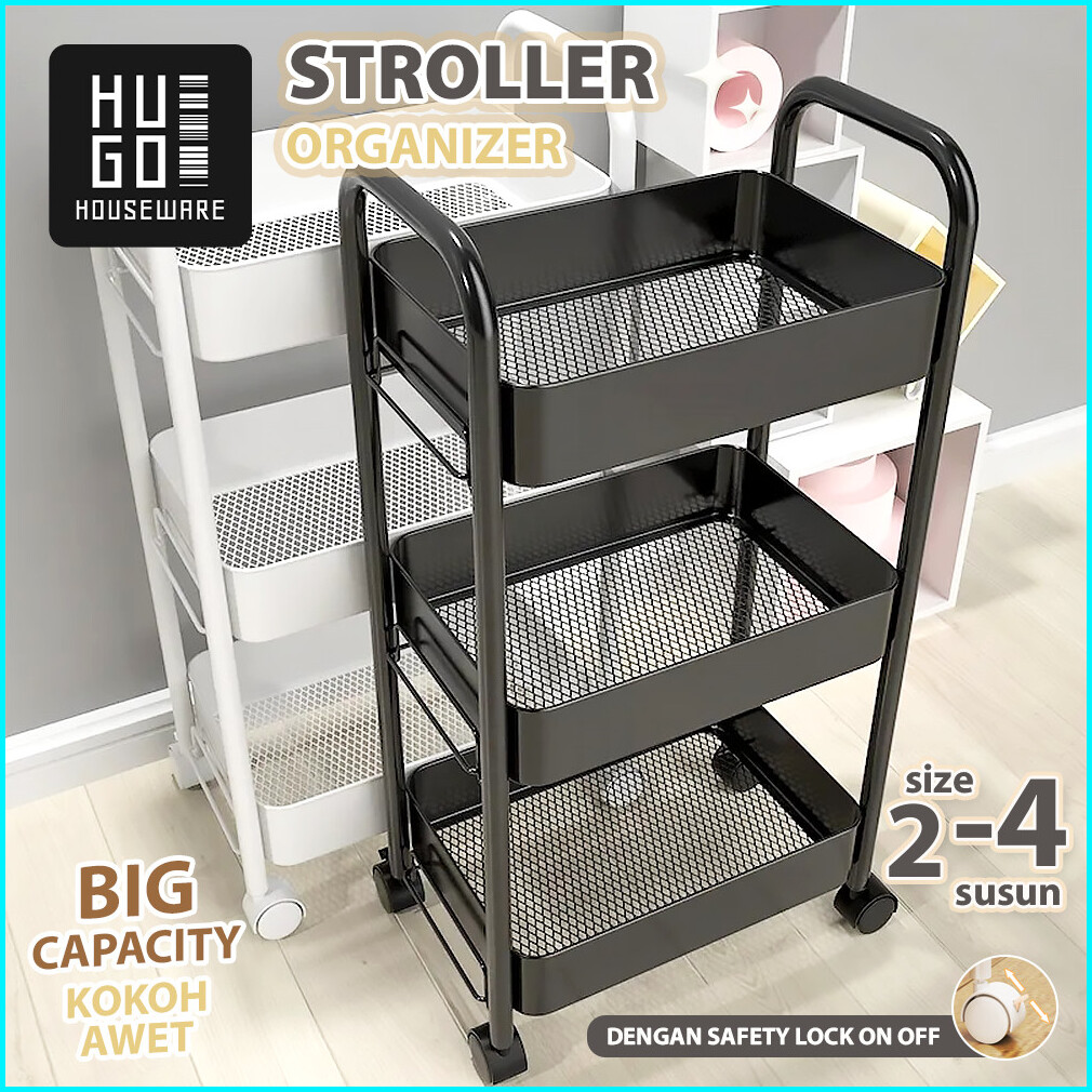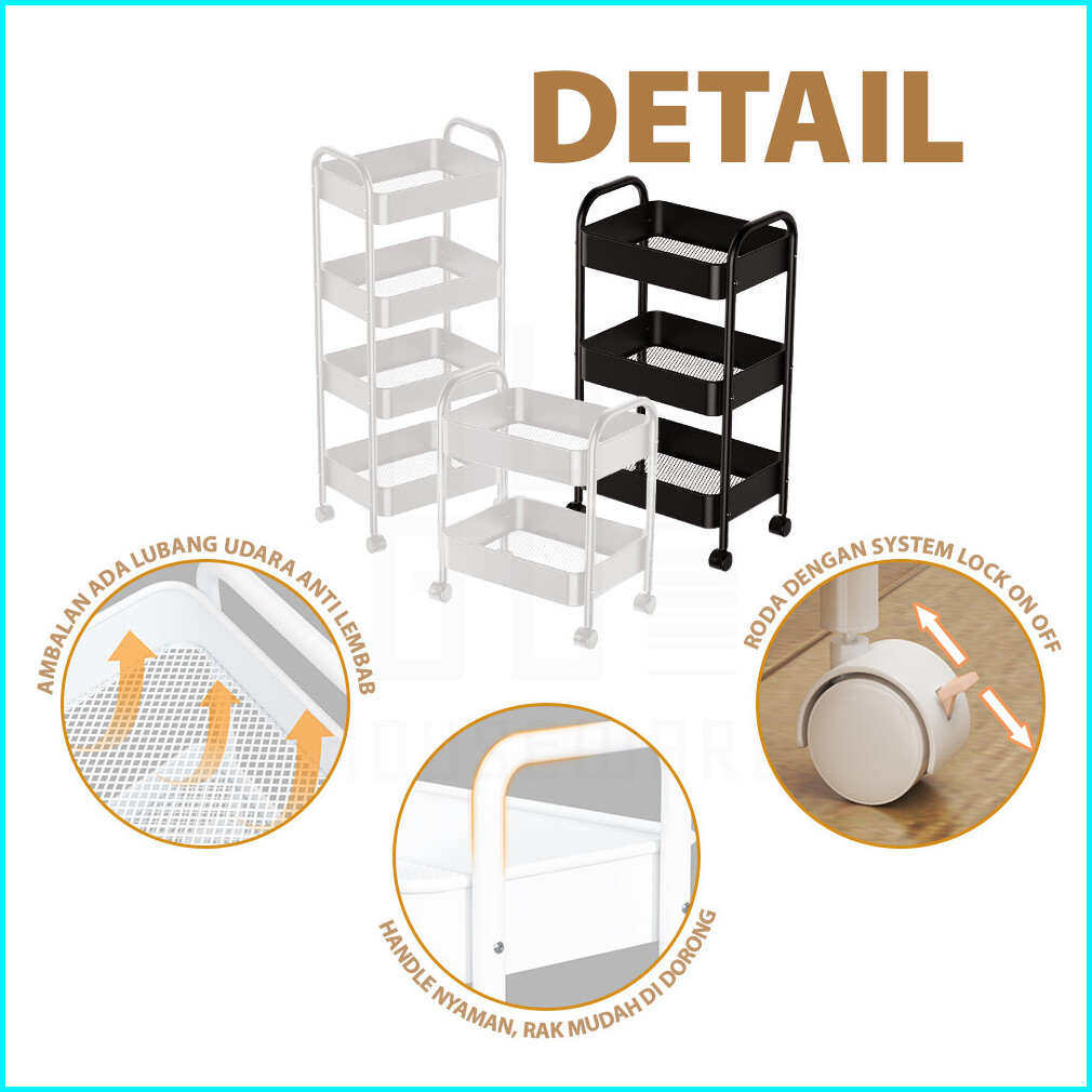 Hugo Rak Dapur Besi Serbaguna Rak Besi Penyimpanan Bertingkat Rak Kamar Mandi Rak Salon Rak Troli Susun Dorong Besi Stai