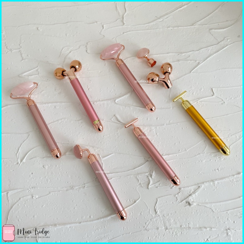 Minifridge Electric Energy Beauty Bar - Alat Pijat Wajah Rose Quartz Face Massager Jade Roller Elektrik Vibrasi Anti Agi