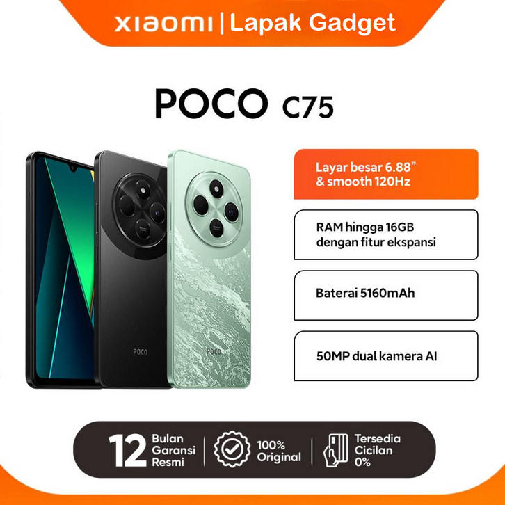 HP POCO C75 8/256GB GARANSI RESMI Layar 6,88" 50MP AI 18W Pengisian cepat Prosesor Helio G81 NFC