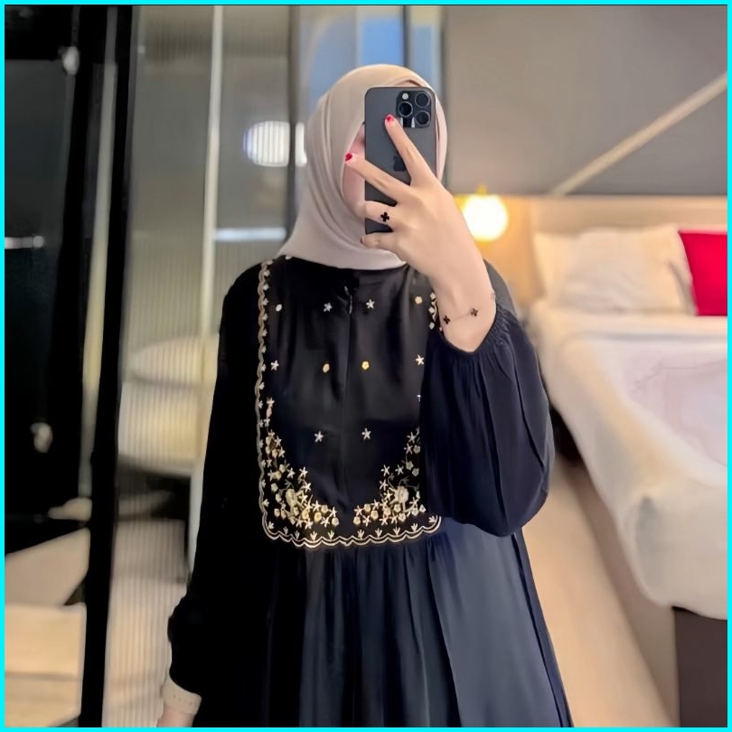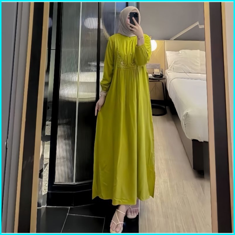 Mecca Dress Gamis Lebaran Bordir Rayon Twil Premium Terbaru Dress Motif Model Kekinian