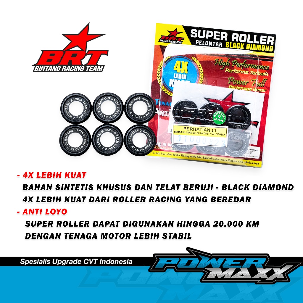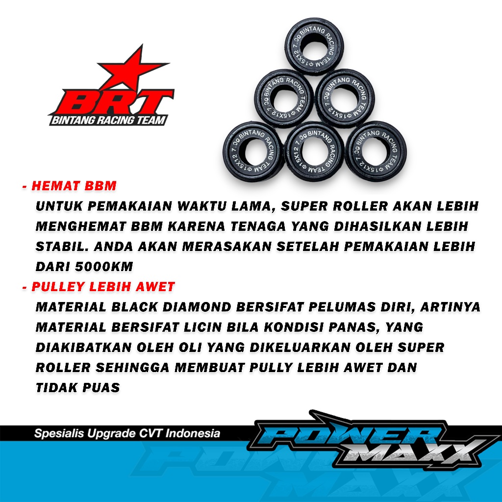 BRT - NMAX AEROX LEXI ROLLER RACING BRT RACING BLACK DIAMOND ROLLER UKURAN 9 DAN 11 GRAM