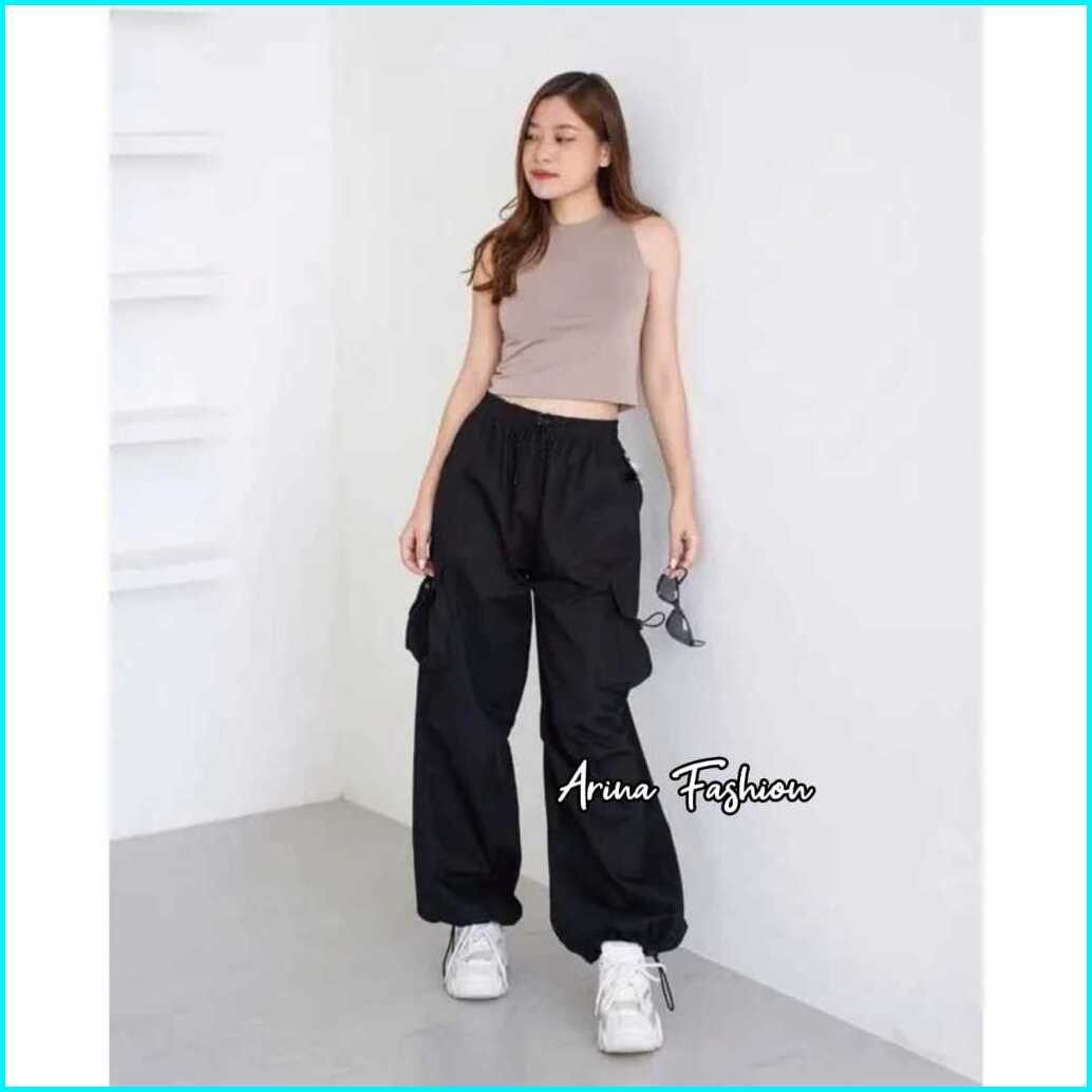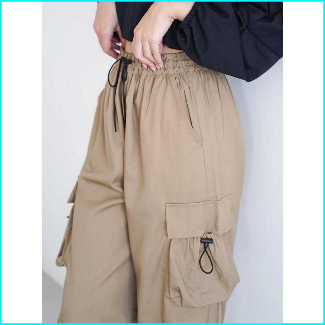 Cargo Pants Wanita Highwaist Loose Pants Korean Style Jumbo - Celana Cargo Wanita Terbaru