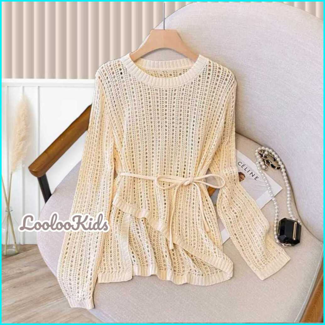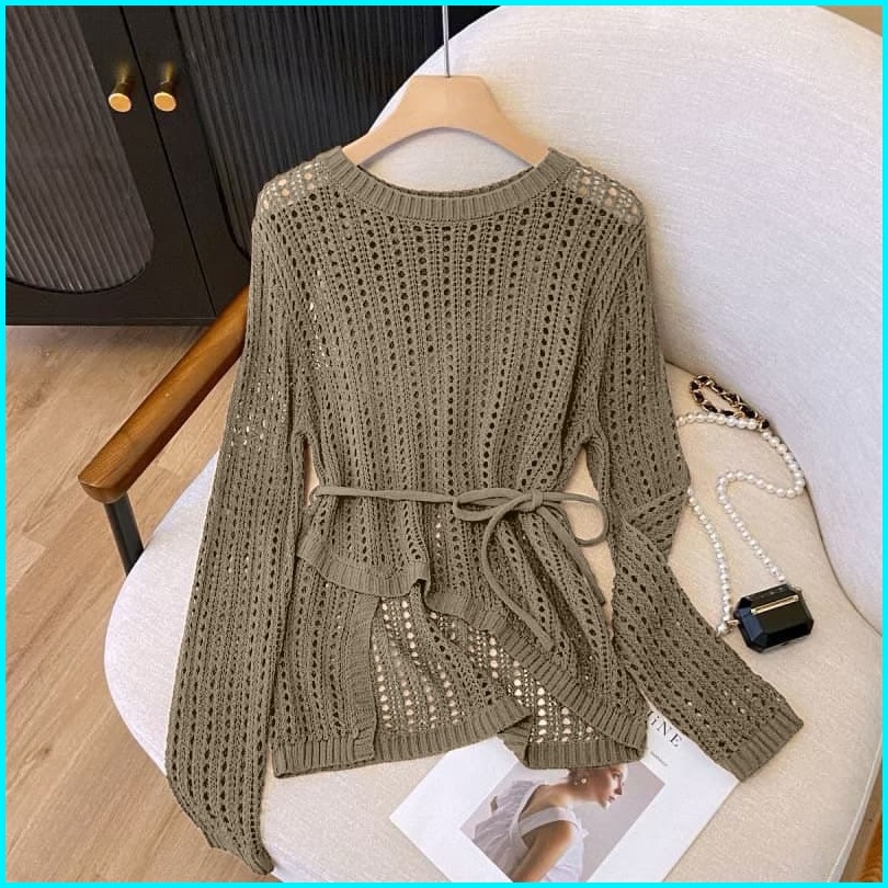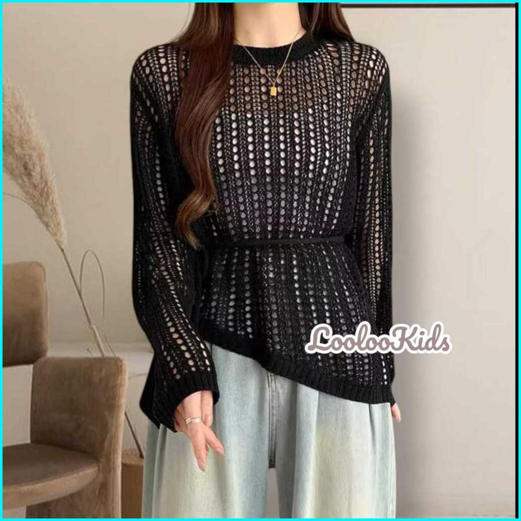 Sweater Rajut Berongga Wanita Lengan Panjang Jaring Premium Terbaru - Tali Knitwear Acrylic - Baju Atasan Blouse Korean
