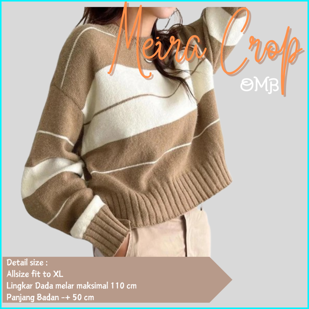 Crop Top Meira Rinsyi Suji Rajut Wanita Blouse Knited Wear Lengan Panjang- Omb