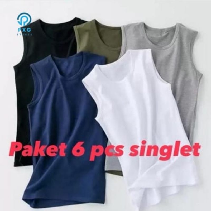 Paket Super Hemat 6 Pcs Baju Singlet Pria, 3 Yukensi 3 Singlet, Kaos Dalam Polos dewasa rib