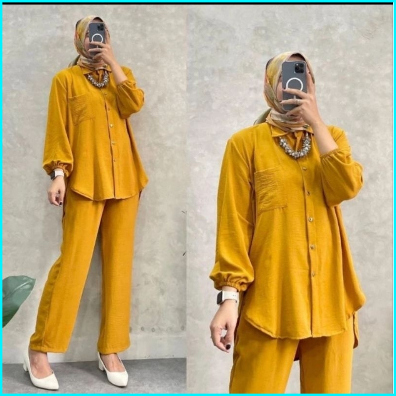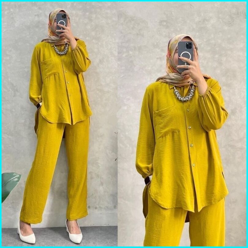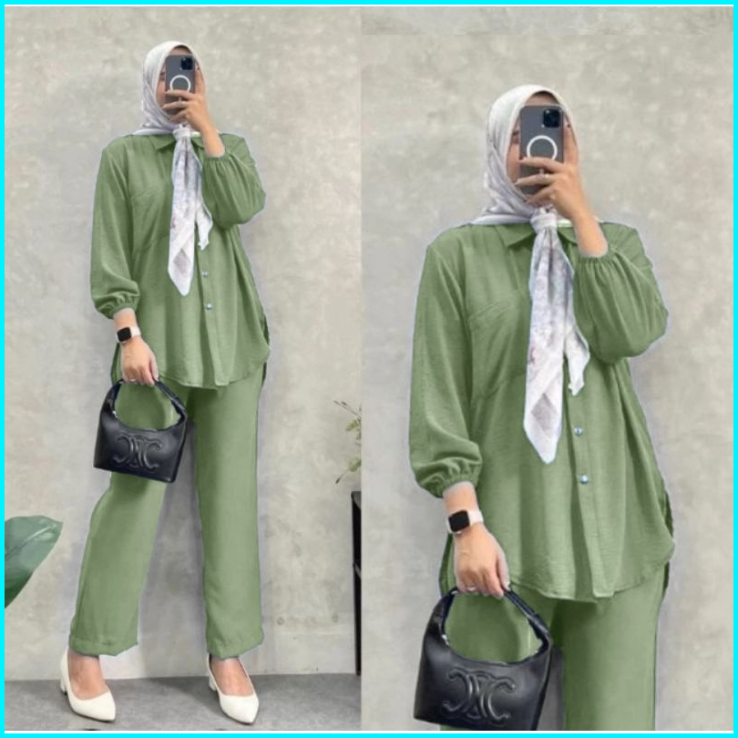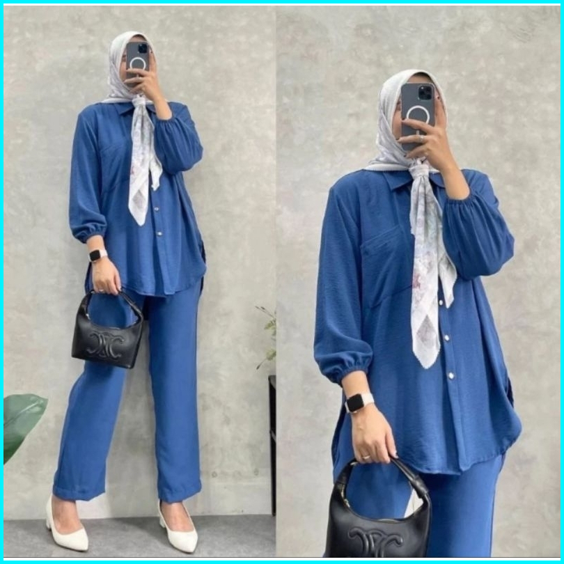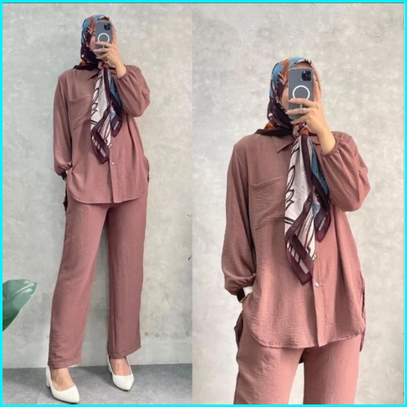 Setelan Amanda Busui Cringkle Airflow One Set Kemeja Amanda Crinkle Set Krinkel Wanita Kekinian Busui