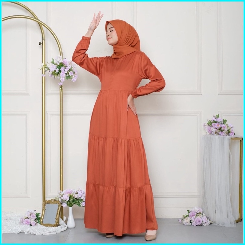 Hanum Dress Rayon Premium Casandra Dress Baju Kondangan Busui Friendly Gamis Susun Ruffle Polos Size M L Xl Xxl