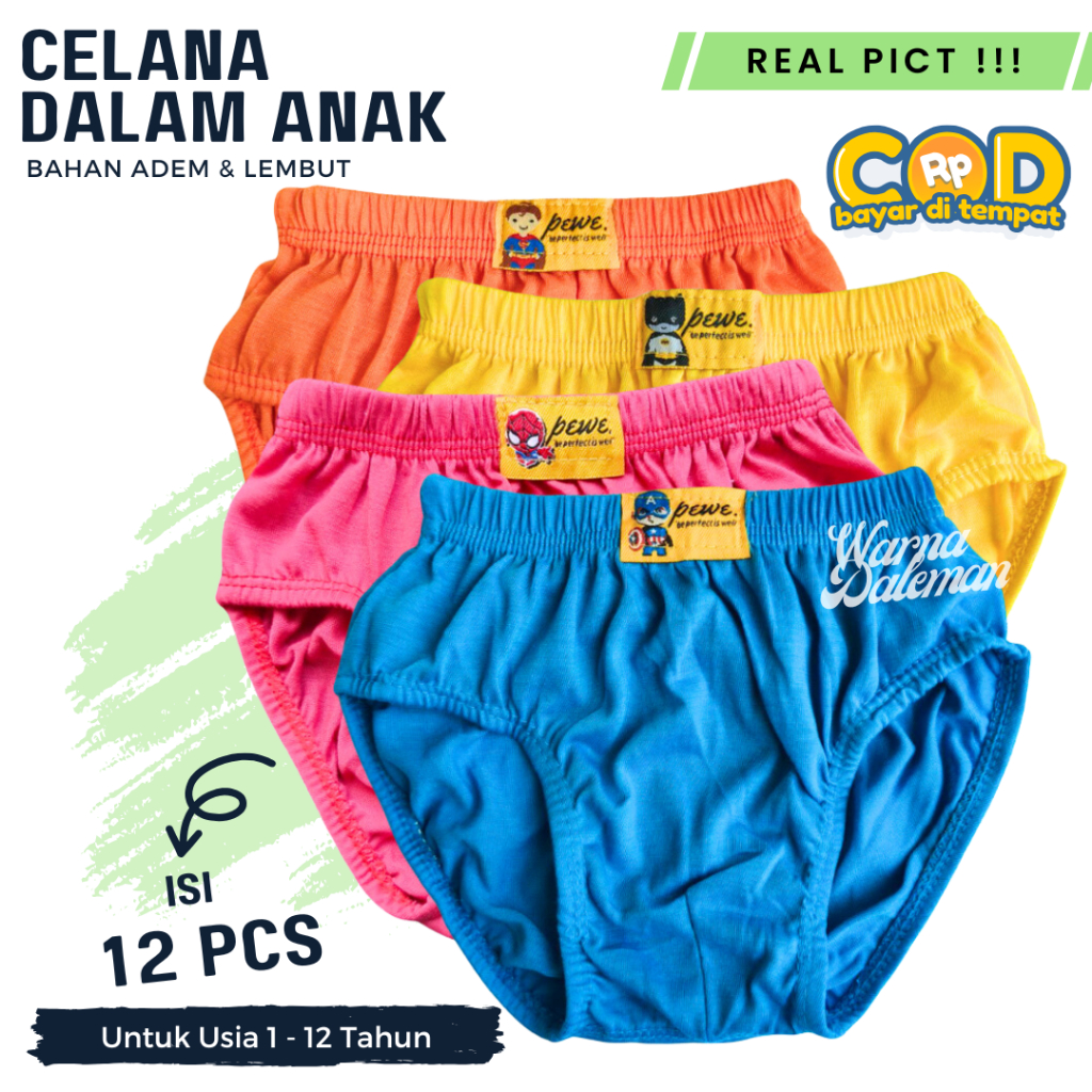Celana Dalam Anak Cowok 12 Pcs Warna usia 2-10 Tahun - Sempak anak cowok - Cd Anak - Cd anak laki - Cd anak Cewek - Cel