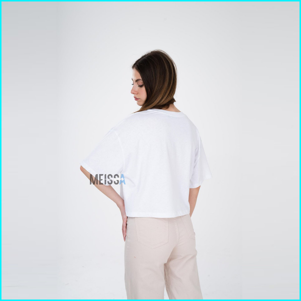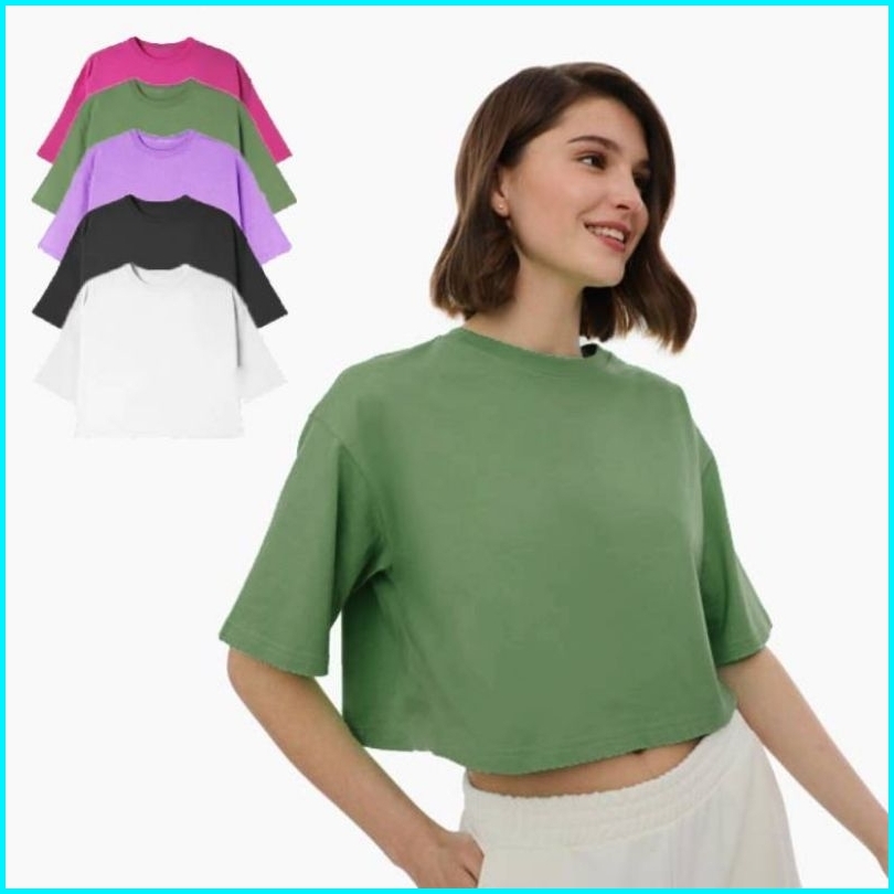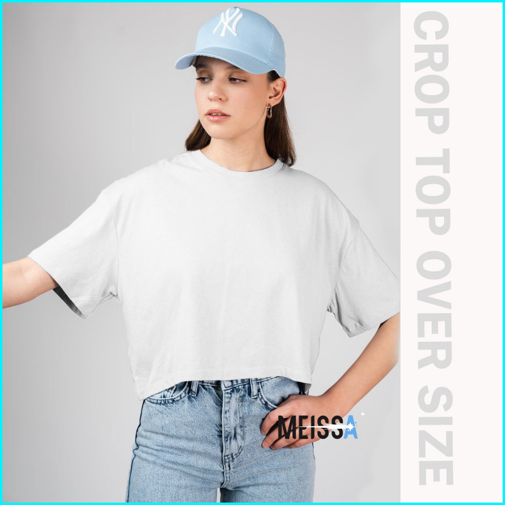 Meissa Kaos Crop Top Polos Kaos Oversize Wanita Polos Atasan Crop Top Sport