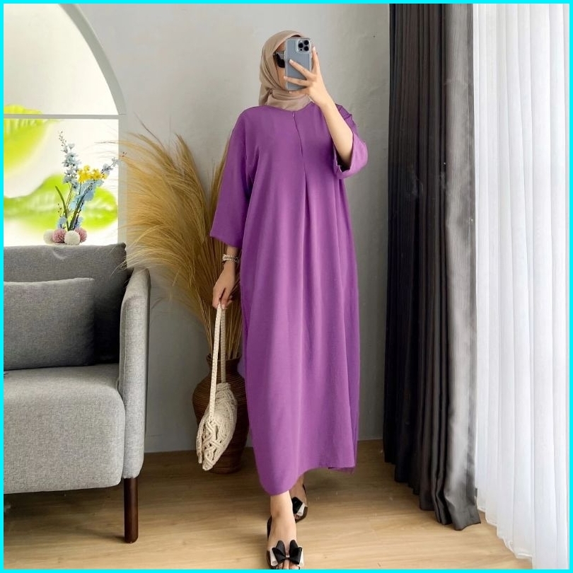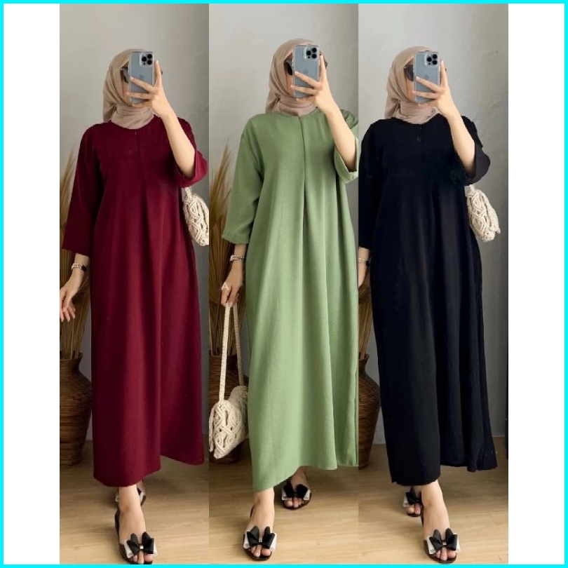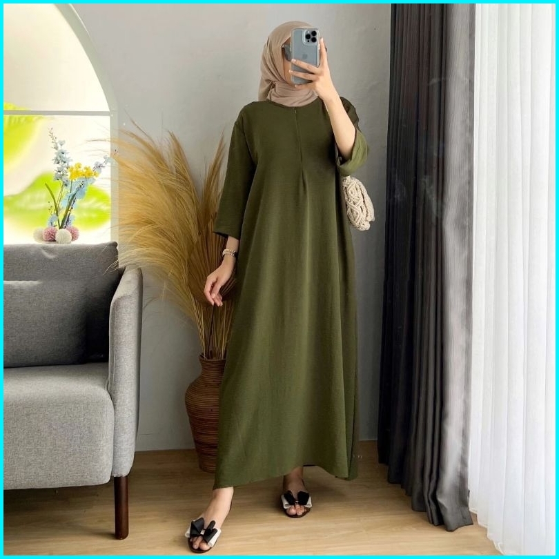 Daster Crinkle Polos Wanita Tangan 3 4 Anti Kusut