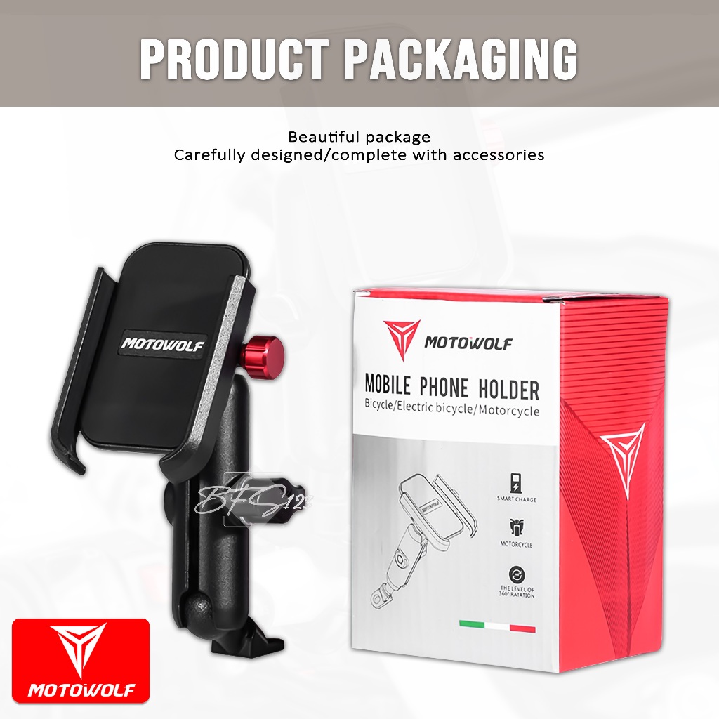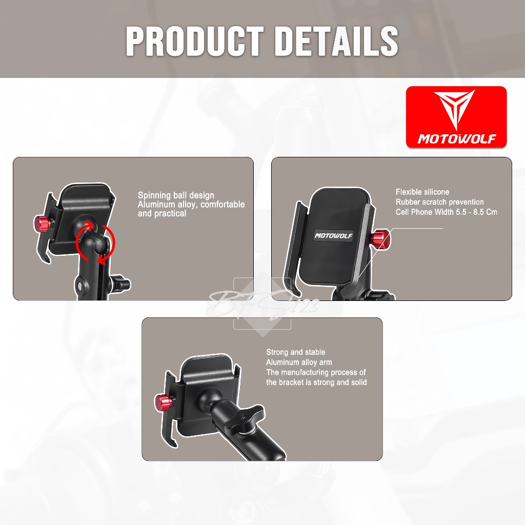 Holder hp motor besi✔MOTOWOLF Phone Holder MDL2821 360 Rotate Holder HP Bracket Stang Spion MOTOWOLF V3/TERMURAH