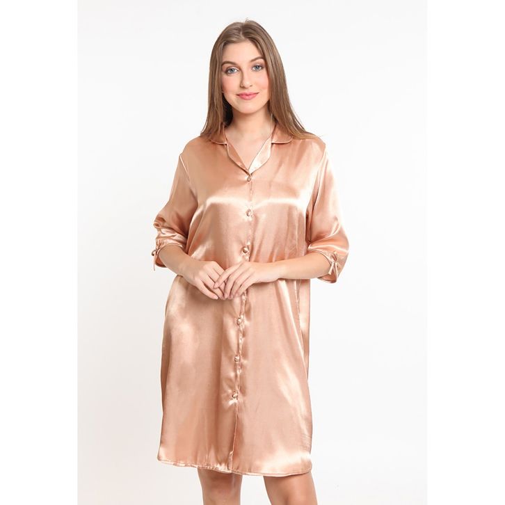 Impression Satin Sleepwear / Daster / Nightdress Baju Tidur dengan Kantong 9001K