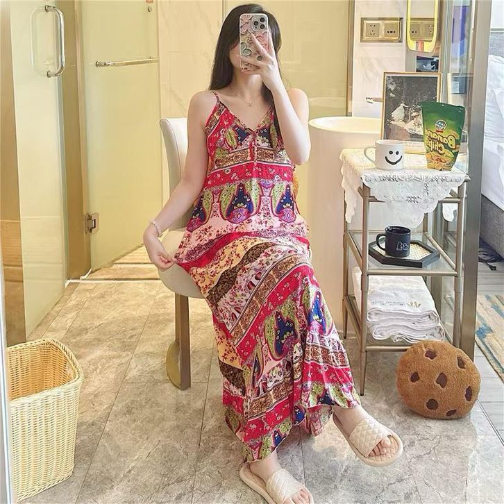 BABYROOM88 BAYLES GAUN TIDUR SUSPENDER BUNGA SUTRA KATUN UKURAN BESAR RAMPING BERMOTIF MEWAH UNTUK LIBURAN PANTAI GAUN