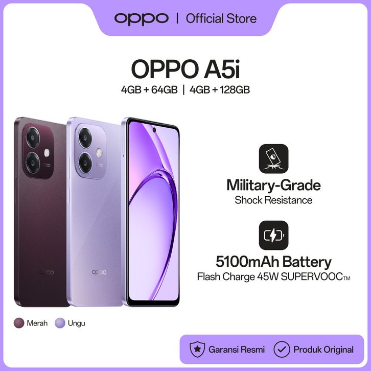 OPPO A5i 4/64GB | 4/128GB [Military Grade Shock Resistance, 5100 mAh 45W SUPERVOOC Battery]