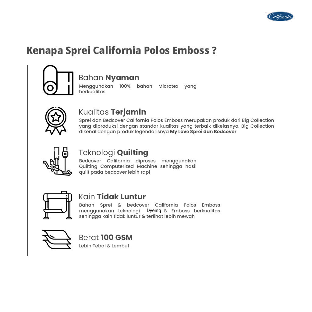 CALIFORNIA Sprei Single Full Fitted Polos Emboss 120x200 Dolphi Grey