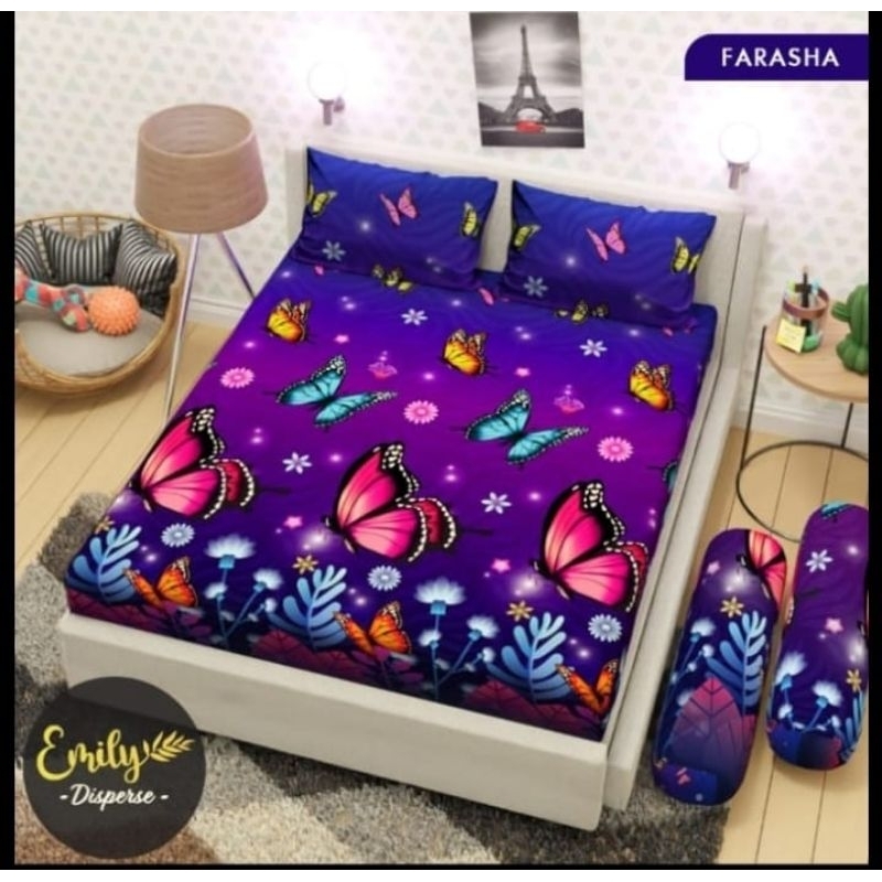 SPREI SET SARUNG BANTAL DAN GULING MOTIF KUPU-KUPU