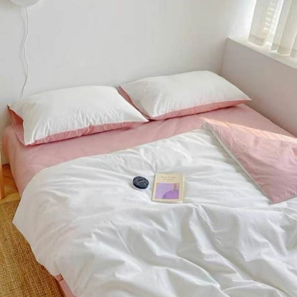 BEDCOVER SET SPREI TWO TONE KOREA WARNA PUTIH MIX PINK UKURAN 90x200 120x200 160x200 180x200 200x200