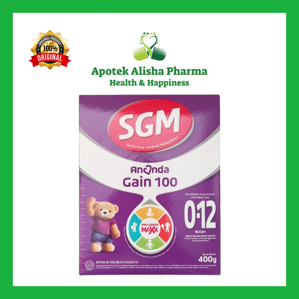 SGM Ananda Gain 100 (0-12bulan) 400gr Susu Formula Tumbuh Kembang Bayi Beresiko Gagal Tumbuh / Mal Nutrisi / SGM Ungu