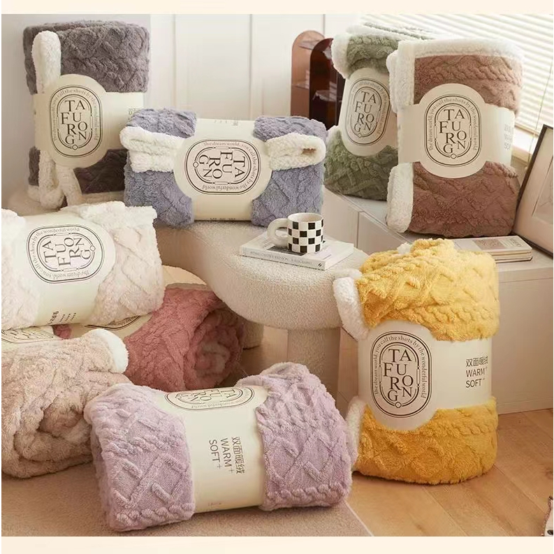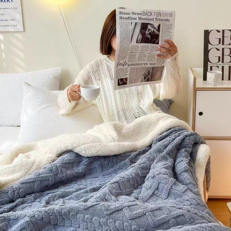 Selimut Bulu Domba Halus Dua Sisi Emboss Aesthetic Terlaris Uk 180X200 Premium Quality + Free Tas