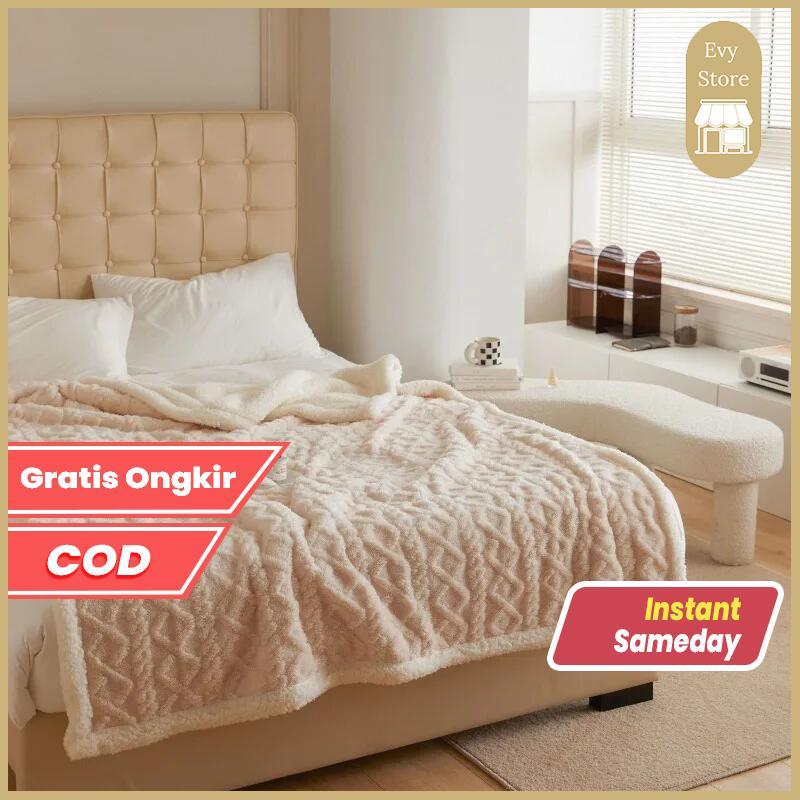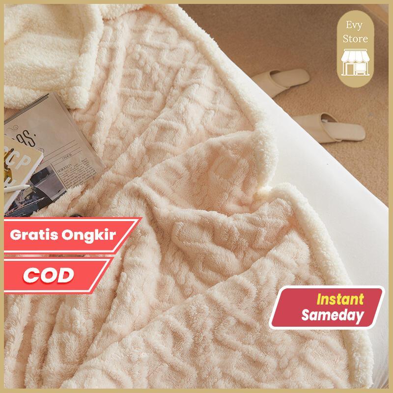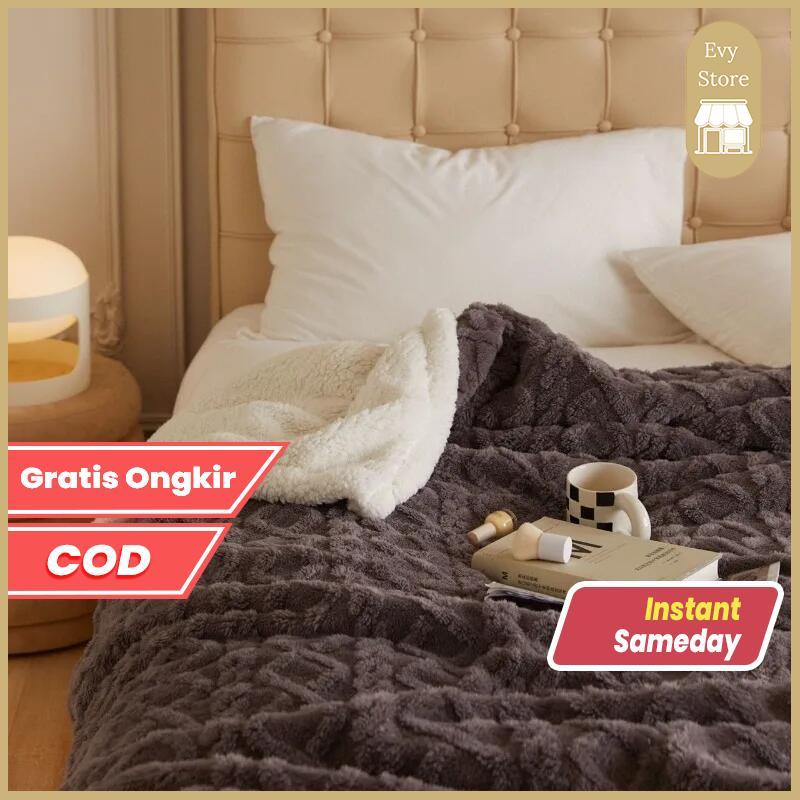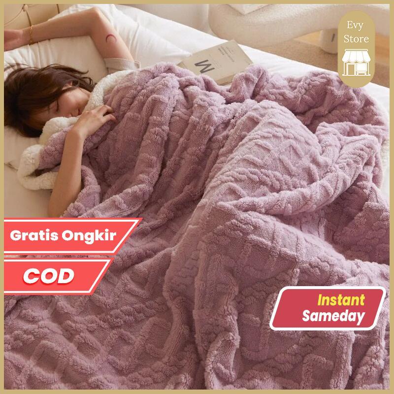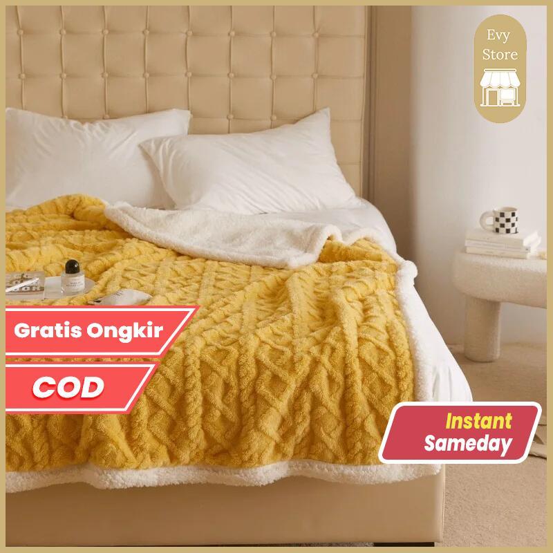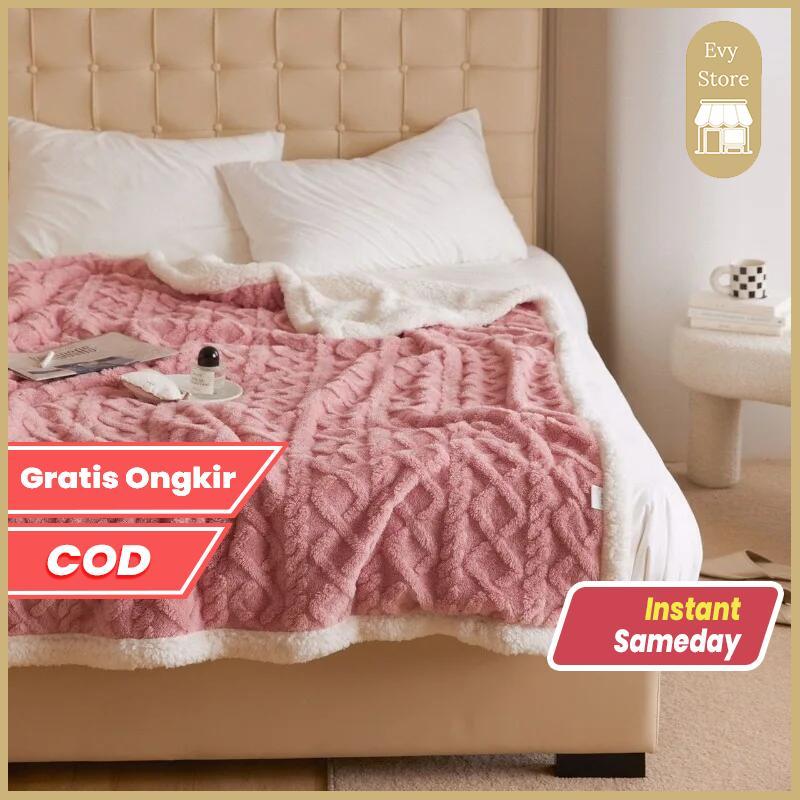 Evy Store Selimut Hangat Musim Dingin Size Queen / Selimut Sofa / Tempat Tidur Bulu Poliester Polos