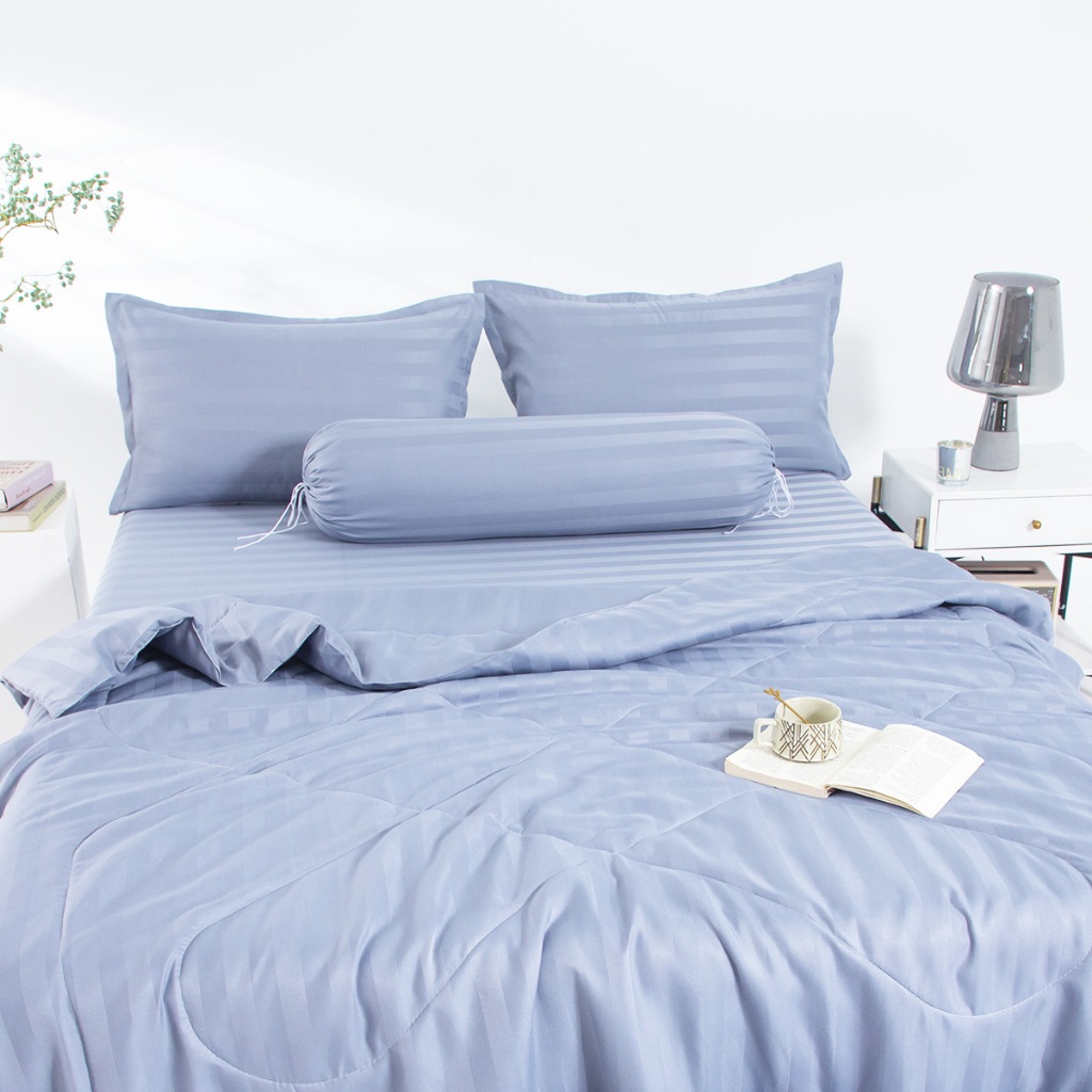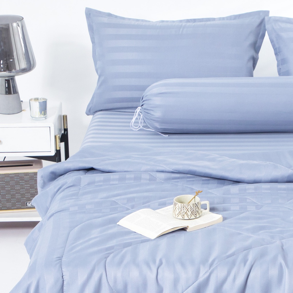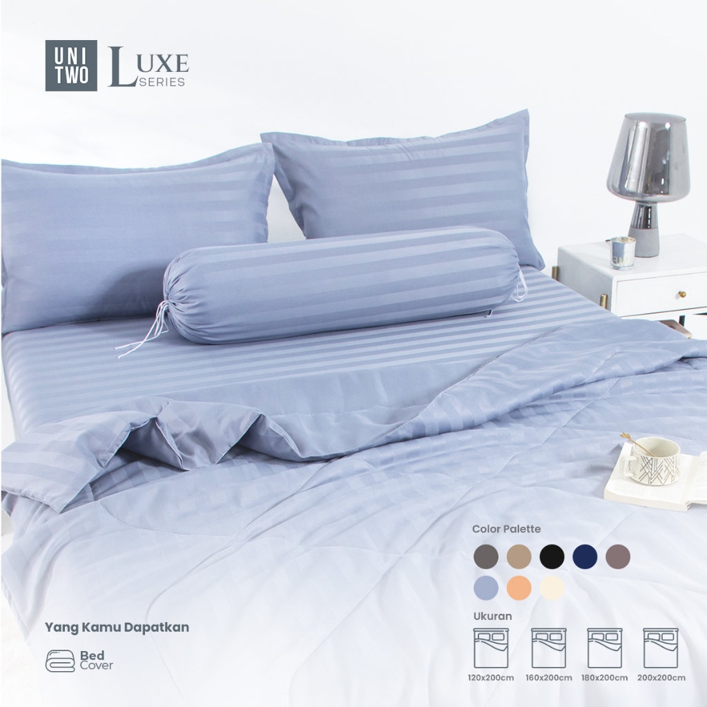 Unitwo Premium [BED COVER ONLY] Luxe Bed Cover Only Hotel Motif Salur Selimut Tidur Lembut Motif Stripe Aesthetic