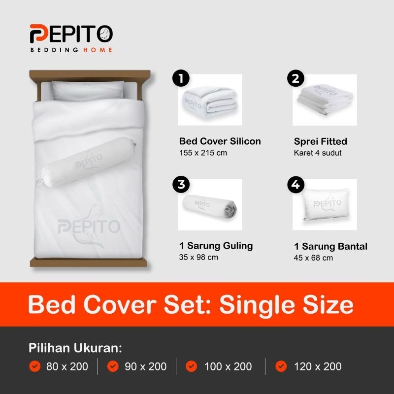 Bedcover Set Katun Tinggi 30 cm - Ukuran Single 90x200 - 120x200 - Pepito