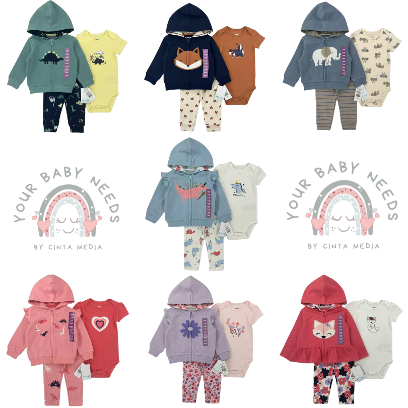 New Setelan Jaket Hoodie Bayi Laki-Laki dan Perempuan 3IN1 Motif Karakter Kualitas Import untuk Anak Newborn Sampai 24 B