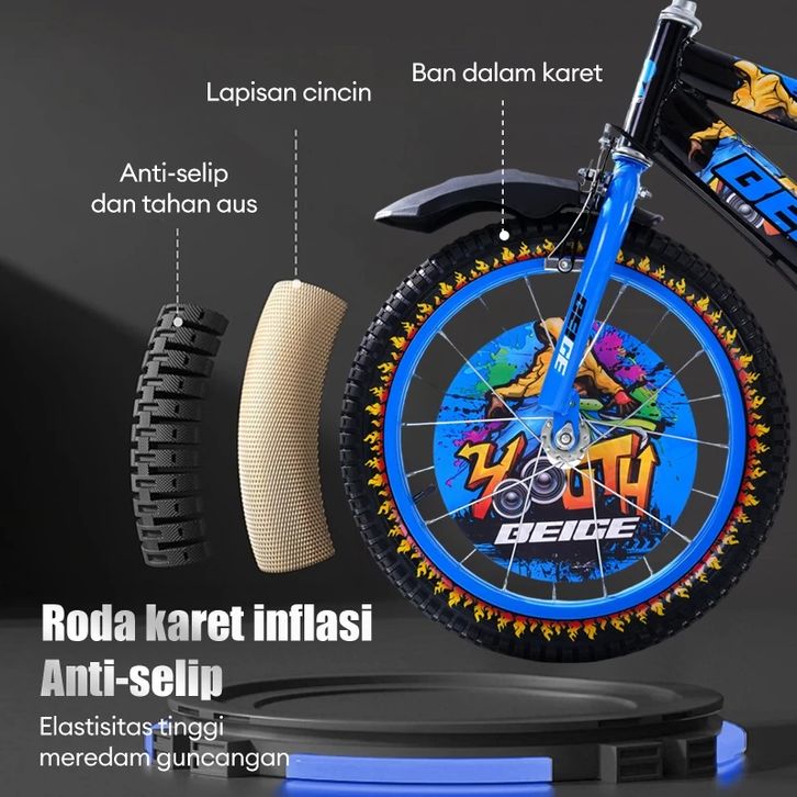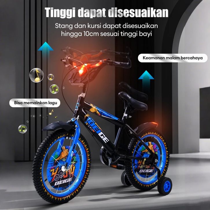 BEIGE Sepeda Anak 2-12Tahun Rangka Baja Karbon Roda Pelatih Lampu Aman Tahan Lama untuk Belajar