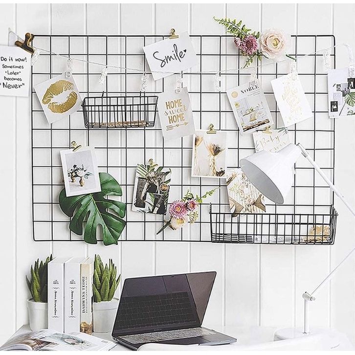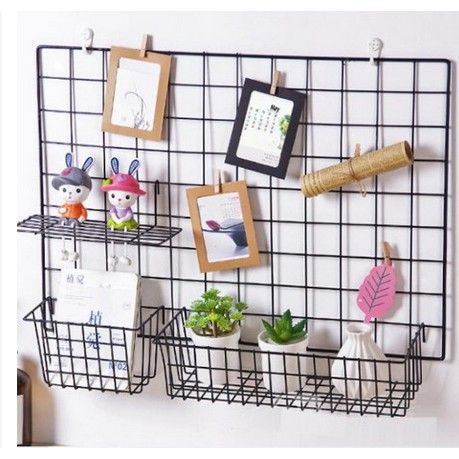 (TERMURAH) HIJANG Hiasan Dinding wire grid Keranjang Besi Rak Gantung Dekorasi Dinding