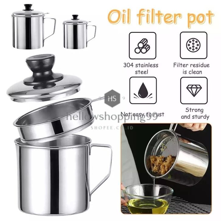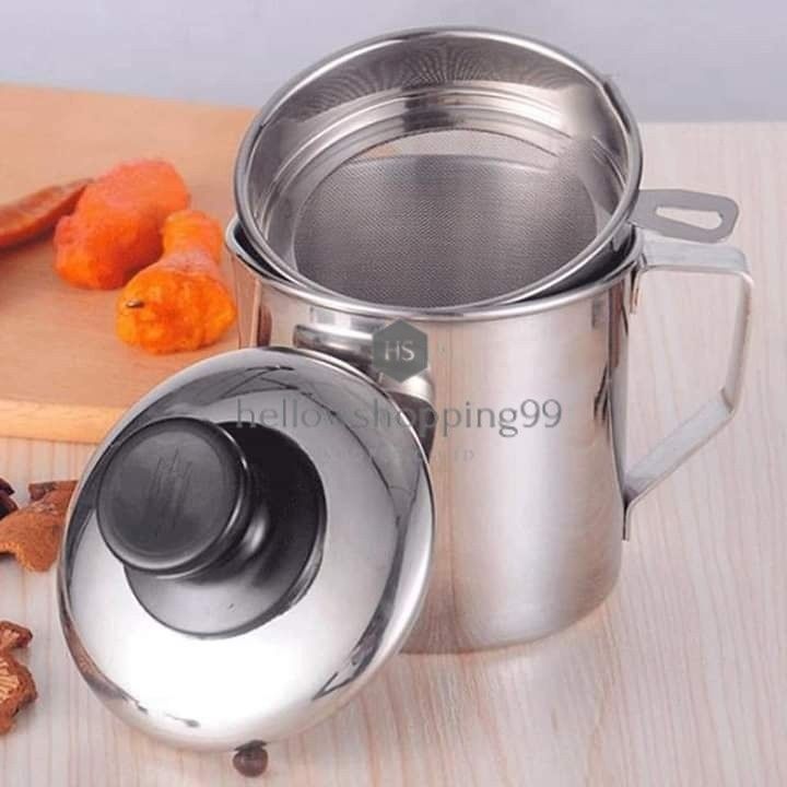-OIL POT SARINGAN STAINLESS MINYAK GORENG SISA WADAH JELANTAH ihikl