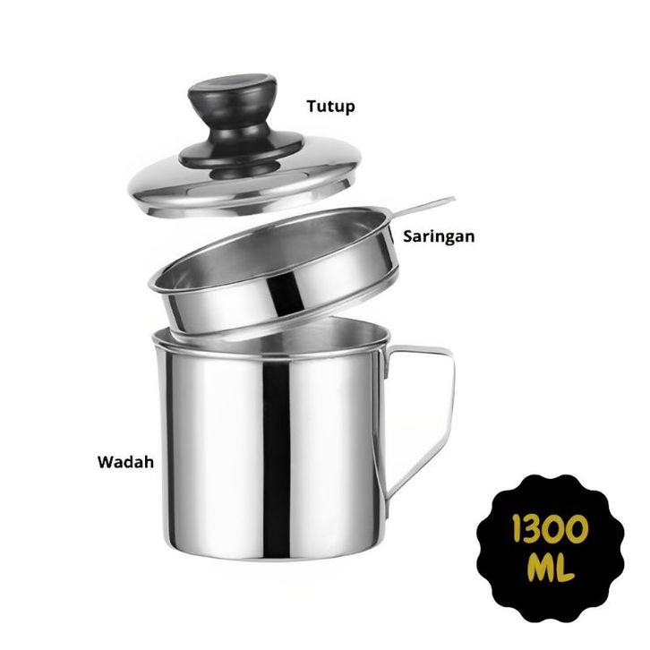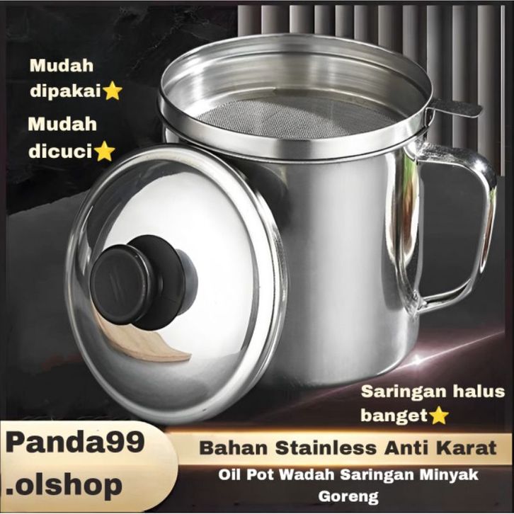 PREMIUM Oil Pot Wadah Saringan Minyak Stainless Steel 1.3L⭐ Panda99 ⭐ ogisr