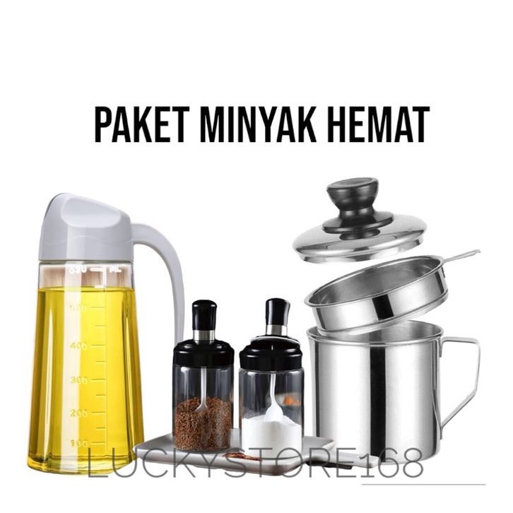 PROMO Paket Super Hemat Botol Minyak Kaca 630ML + Oil Pot Minyak Stainless Steel 1,3Liter + Tempat Bumbu Botol