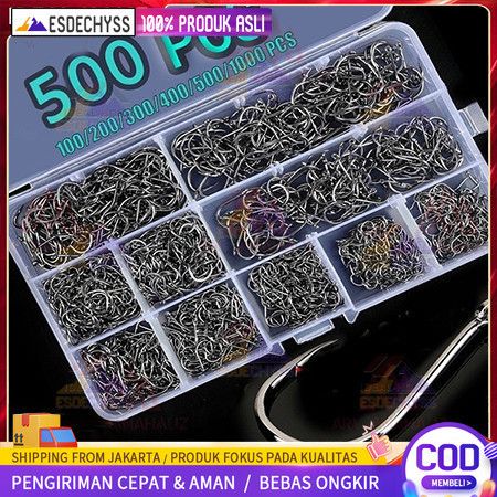 【】500 Pcs Kail Pancing Aneka Ukuran Bahan bajja Karbon Dengan Tali Pengait/100/1000pcs Fishing Hook Set High-Carbon Ste