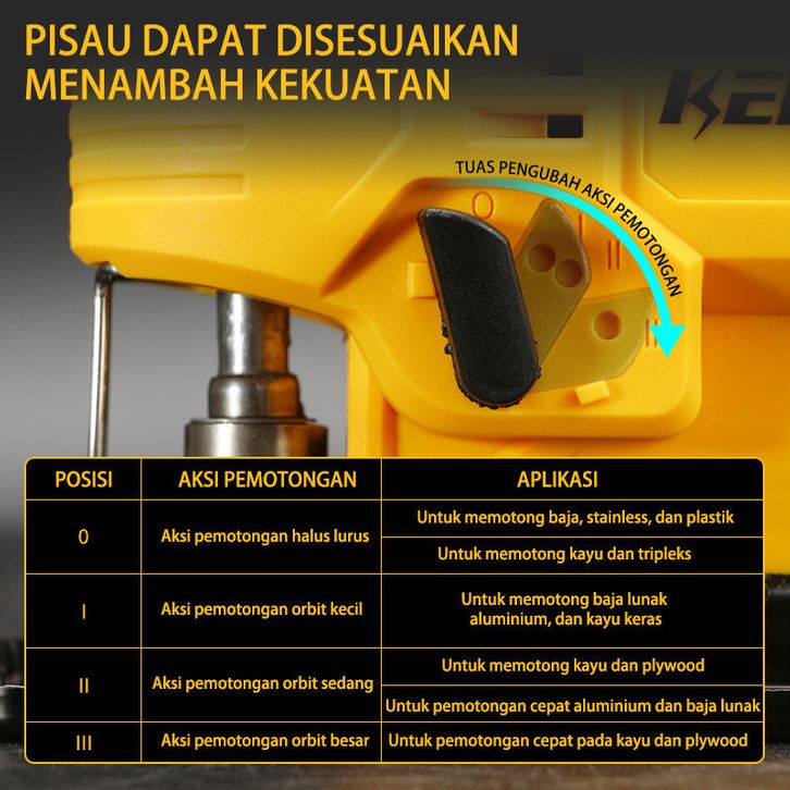 【KEELAT KCJS01】 Jig saw 20V Tanpa Kabel, Baterai Lithium Brushless, Mesin Router Listrik untuk Kayu dan Logam