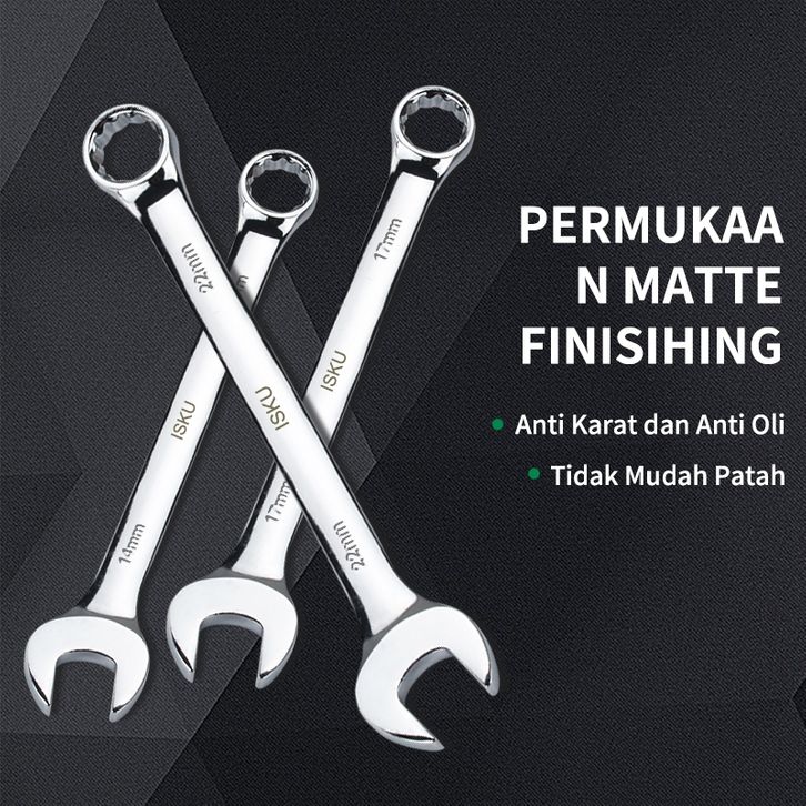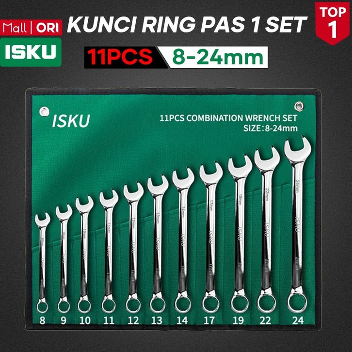 Isku Kunci Ring Pas Set Pas 8-24mm Set 11 Pcs Kunci Ring Pas Set Tools Bahan Crv Kombinasi Wrench