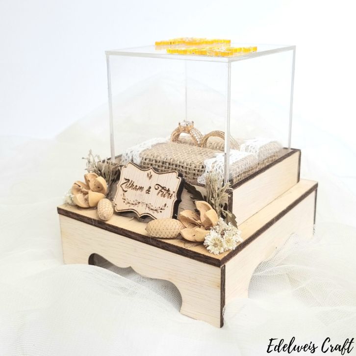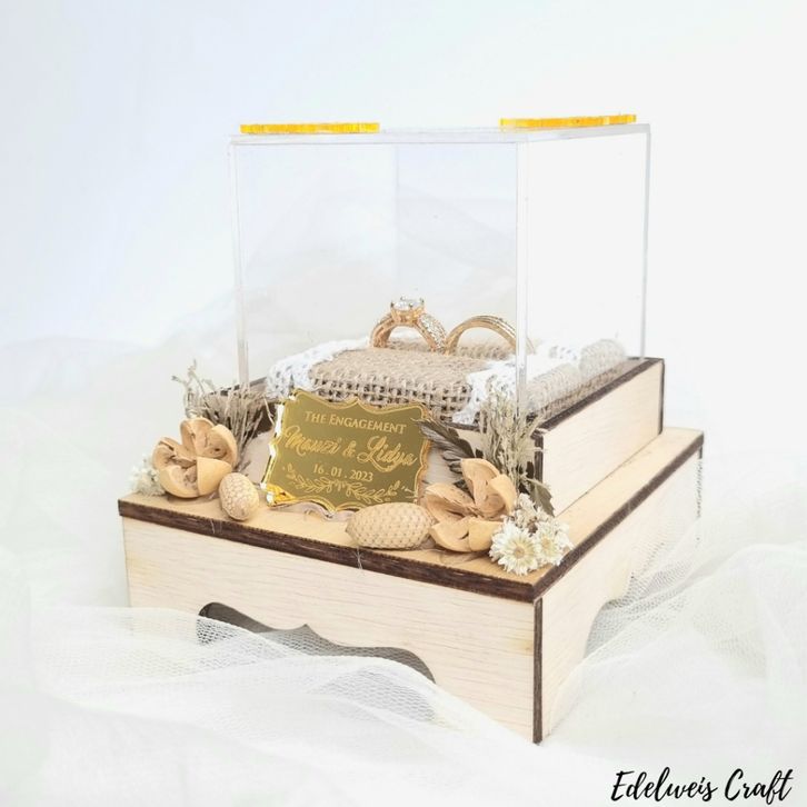 Kotak Cincin Pernikahan Kayu Akrilik Gaya Rustic bonus Custom Nama