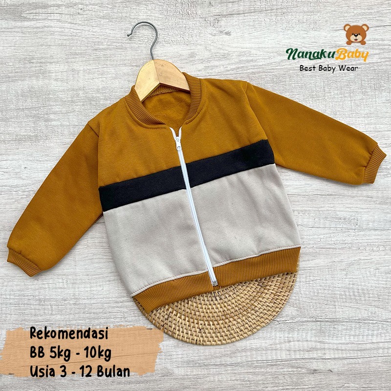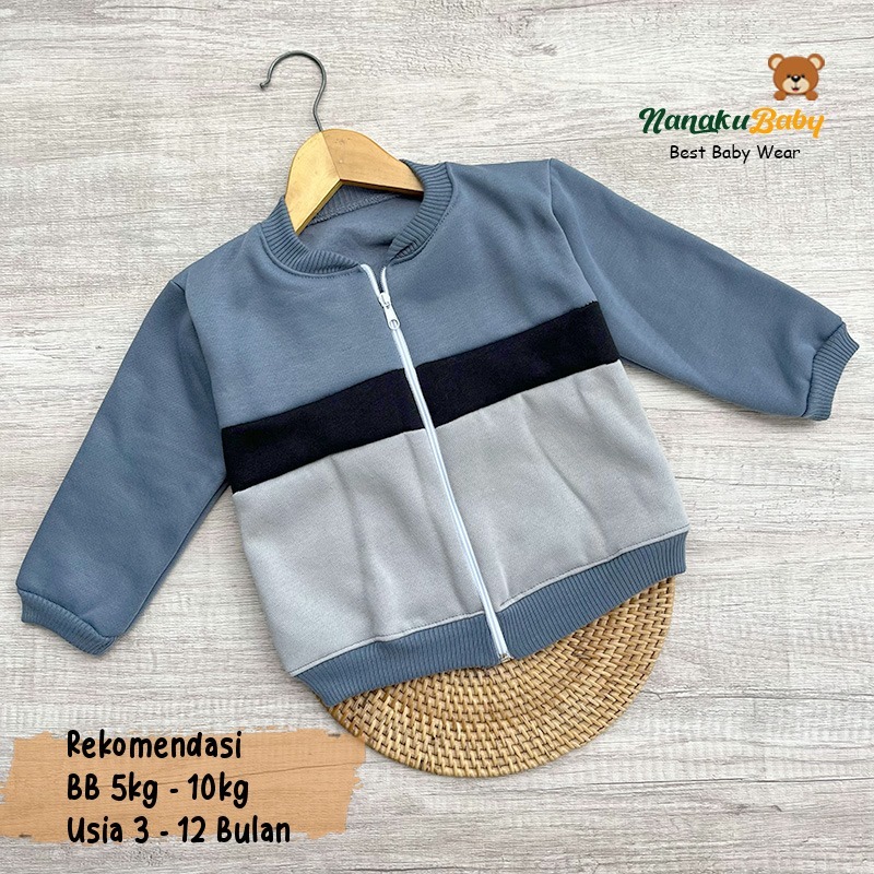 Nanaku Baby - Jaket Bayi Crewneck Usia 3-15 Bulan || Jaket Bayi Resleting || Mantel Anak Laki Laki || Baju Hangat Anak S